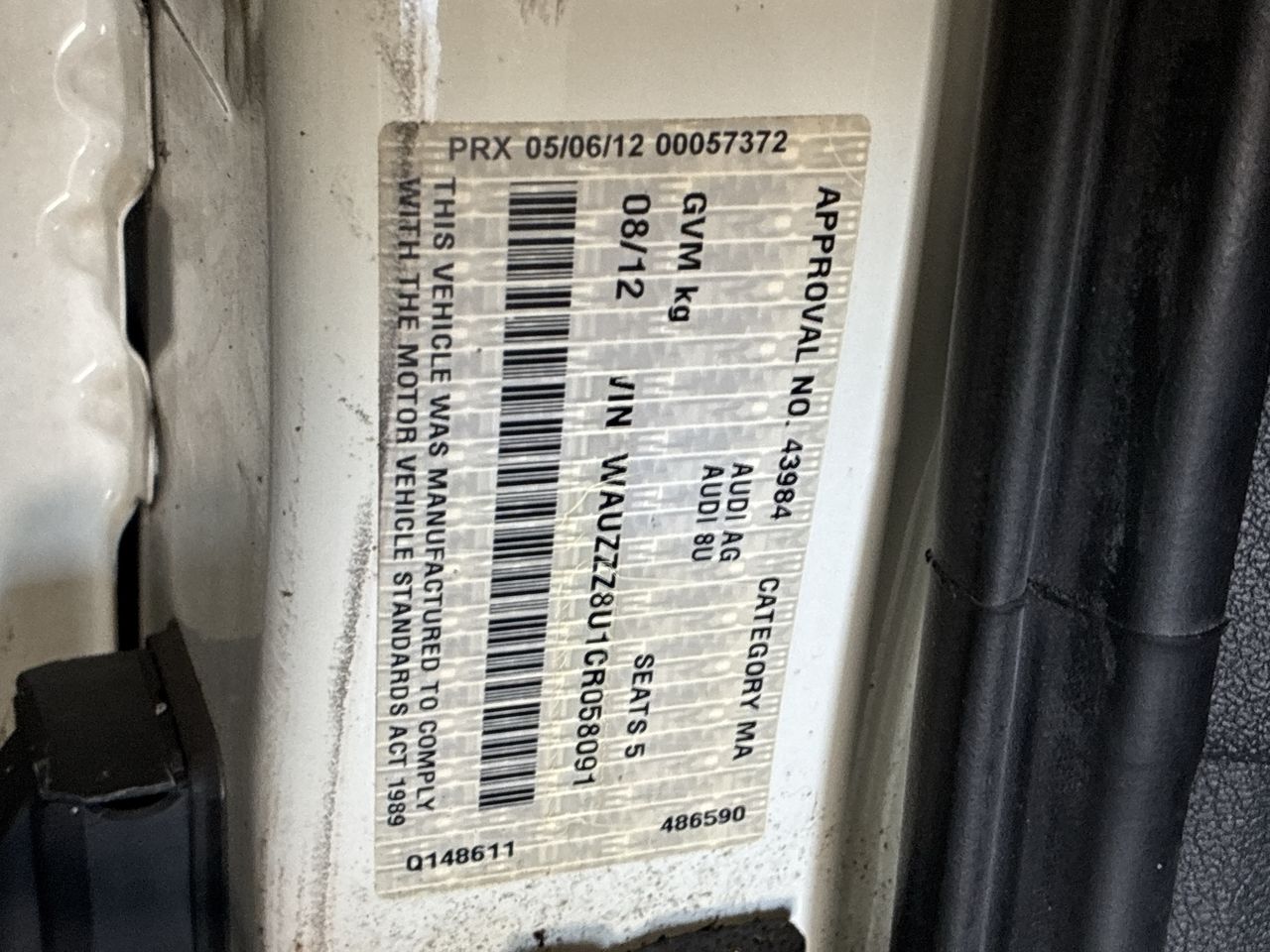 • VIN: WAUZZZ8U1CR058091