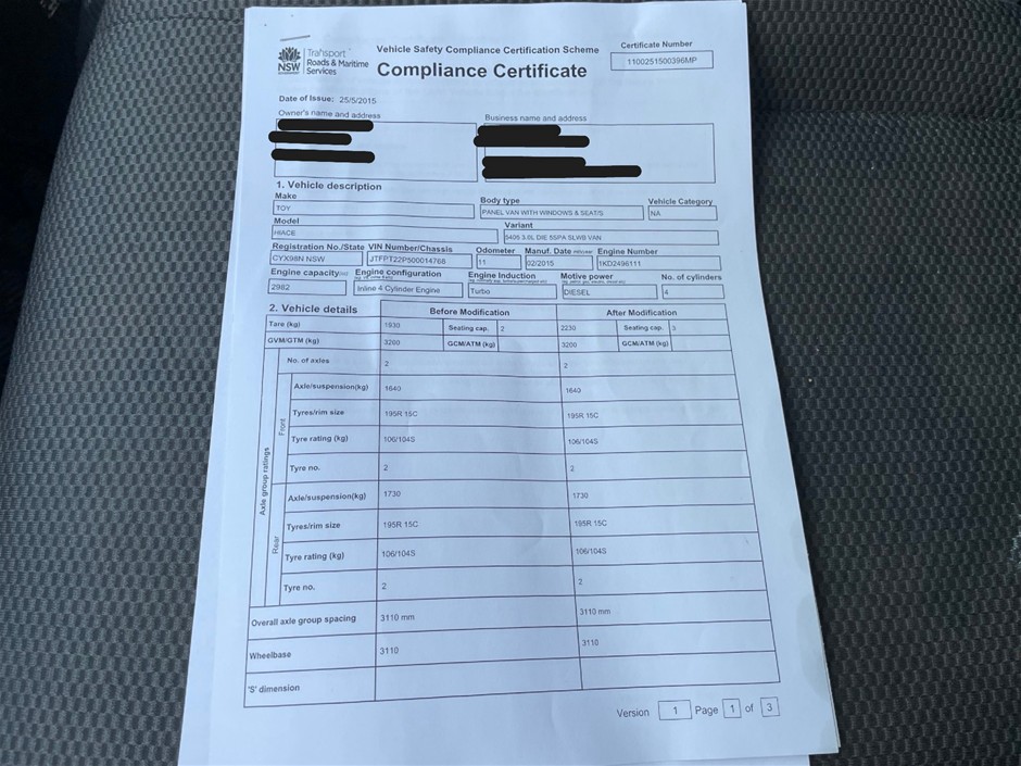 | Part of Sale | 2015 Toyota HiAce SUPER LWB KDH221R Turbo Diesel Automatic Van | ||||||||||||||