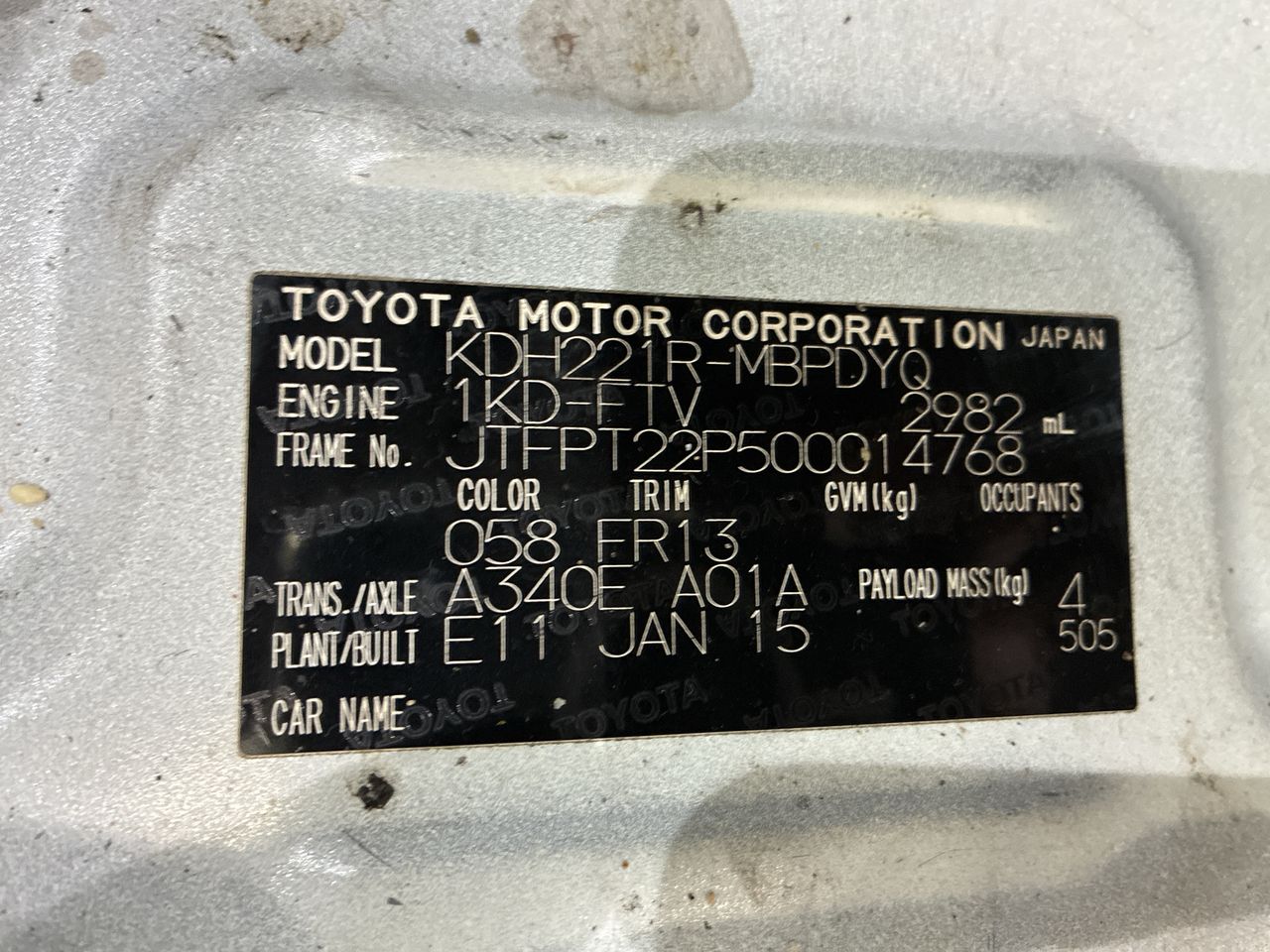(SN:JTFPT22P500014768) (328104-1)