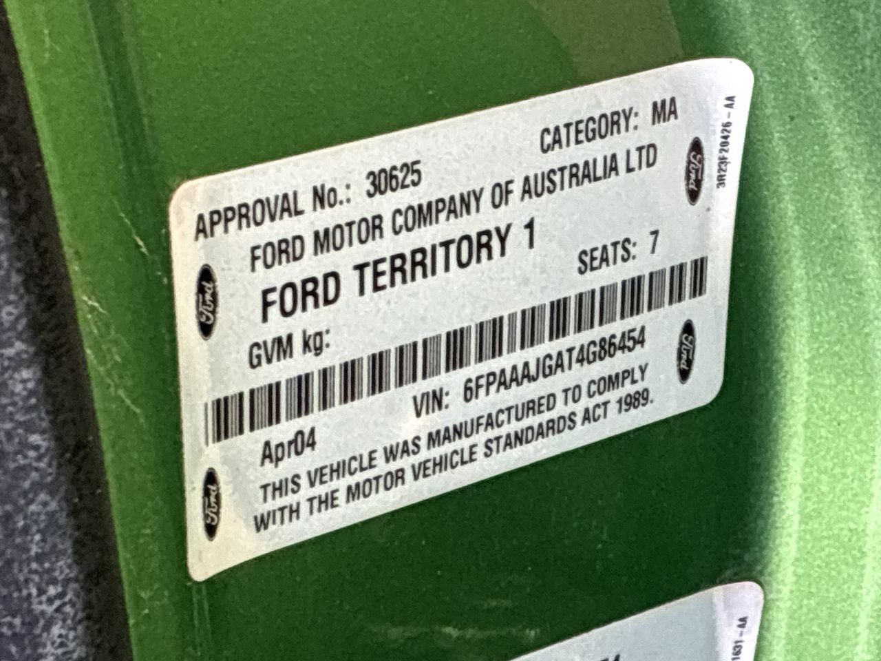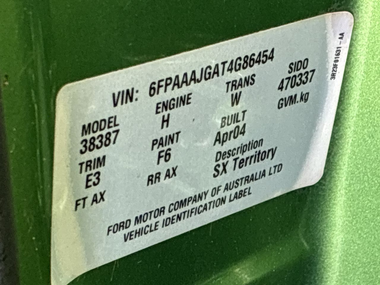 | Part of Sale | 2004 Ford Territory Ghia SX Automatic 7 Seats Wagon | ||||||||||||||
