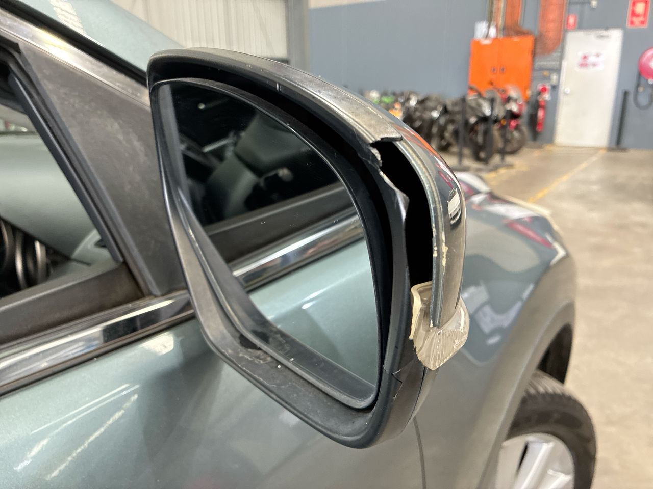 • Interior: Wear and tear consistent with age and kilometres travelled., Exterior: Dents and marks visible with broken side mirror observed, and starter motor noisy.