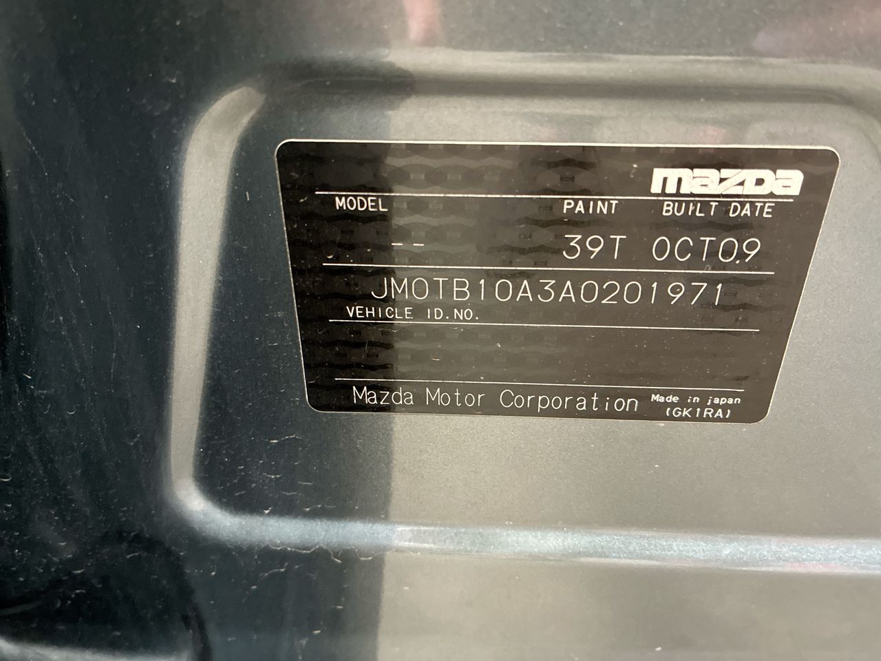 • VIN: JM0TB10A3A0201971