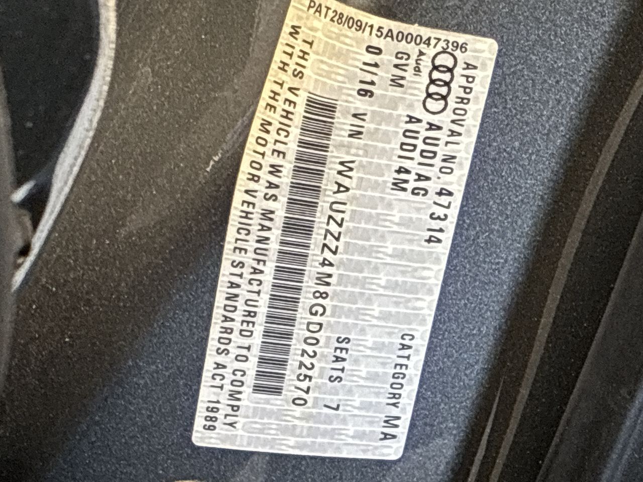 • VIN: WAUZZZ4M8GD022570