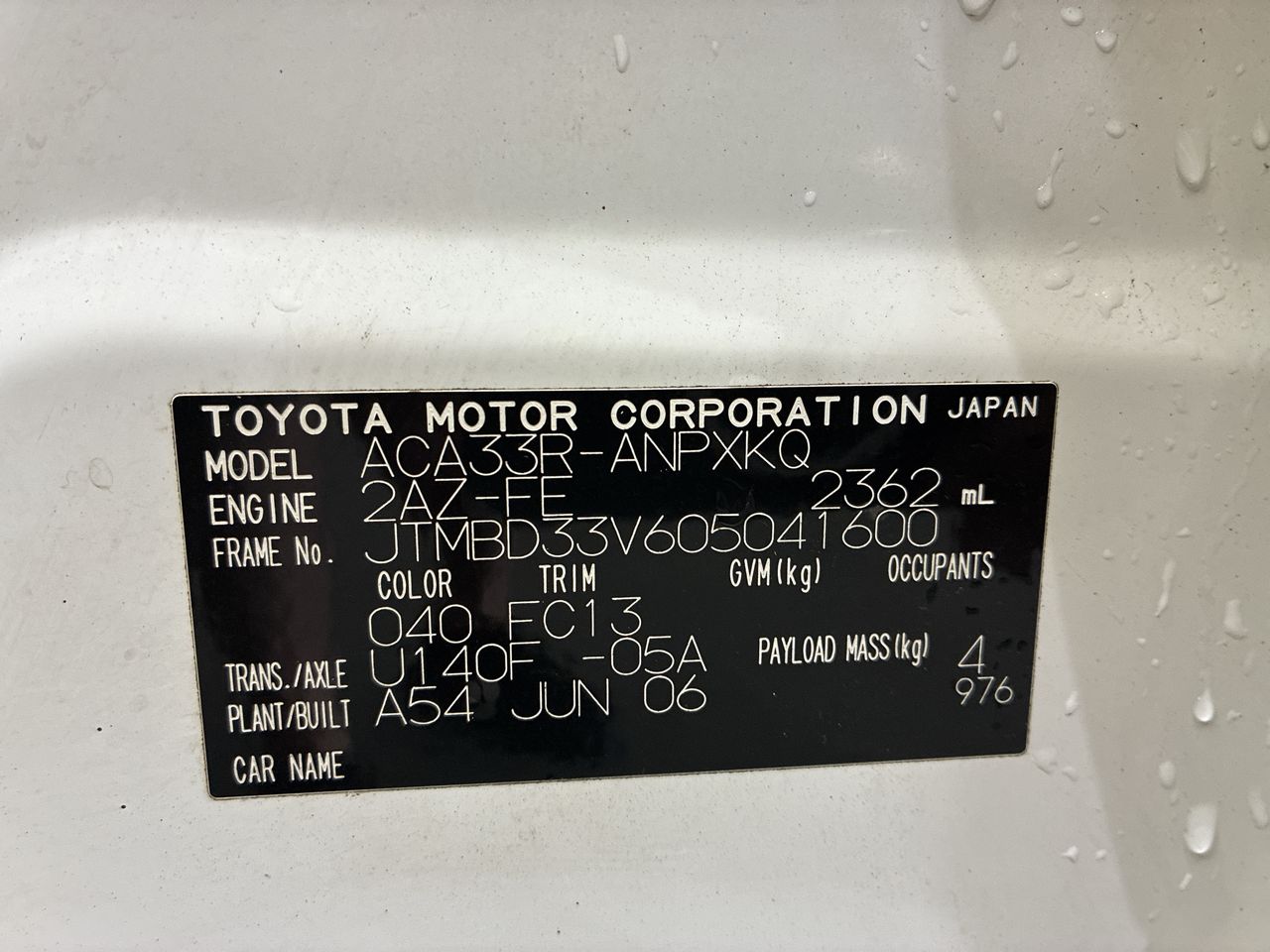 | Part of Sale | 2006 Toyota Rav 4 CV ACA33R Automatic Wagon | ||||||||||||||