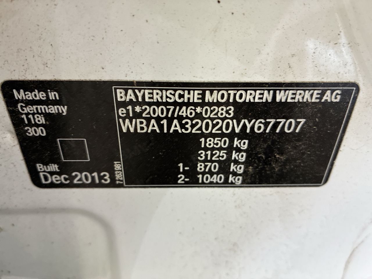 • VIN: WBA1A32020VY67707