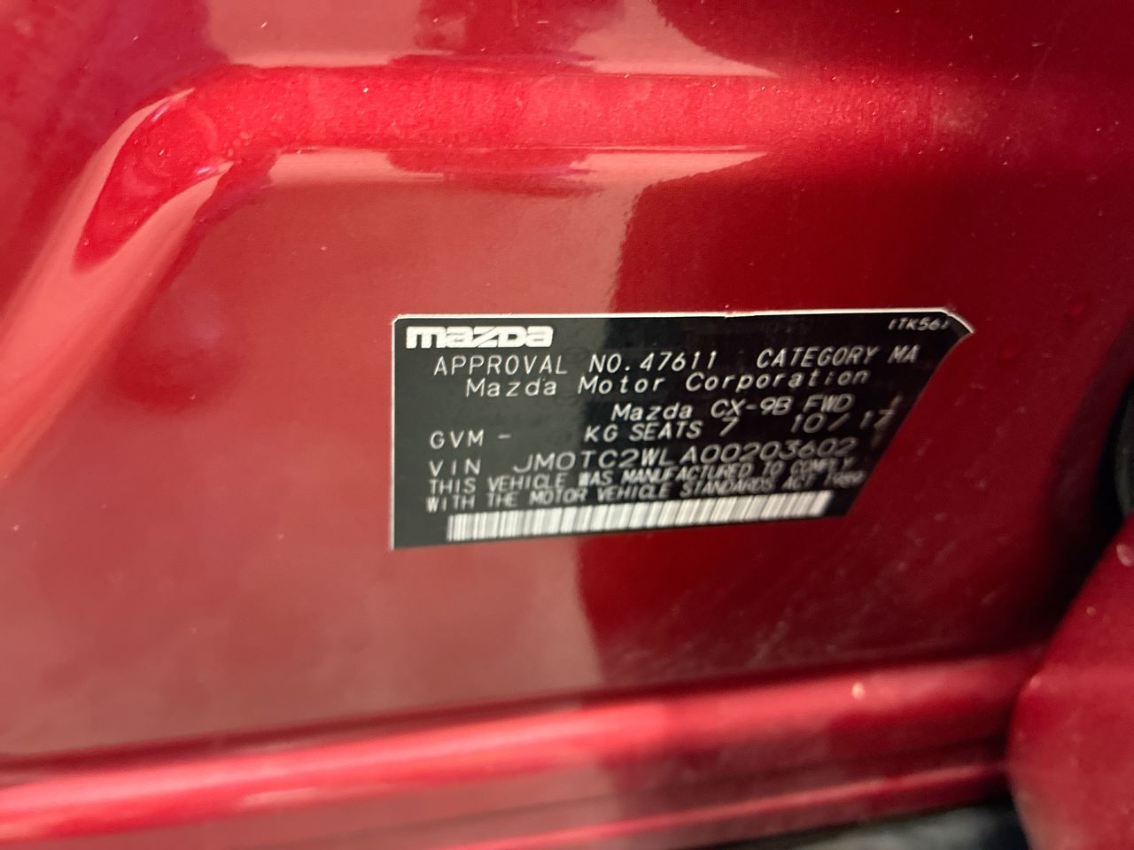 2017 Mazda CX-9 TOURING FWD TC Automatic 7 Seats Wagon