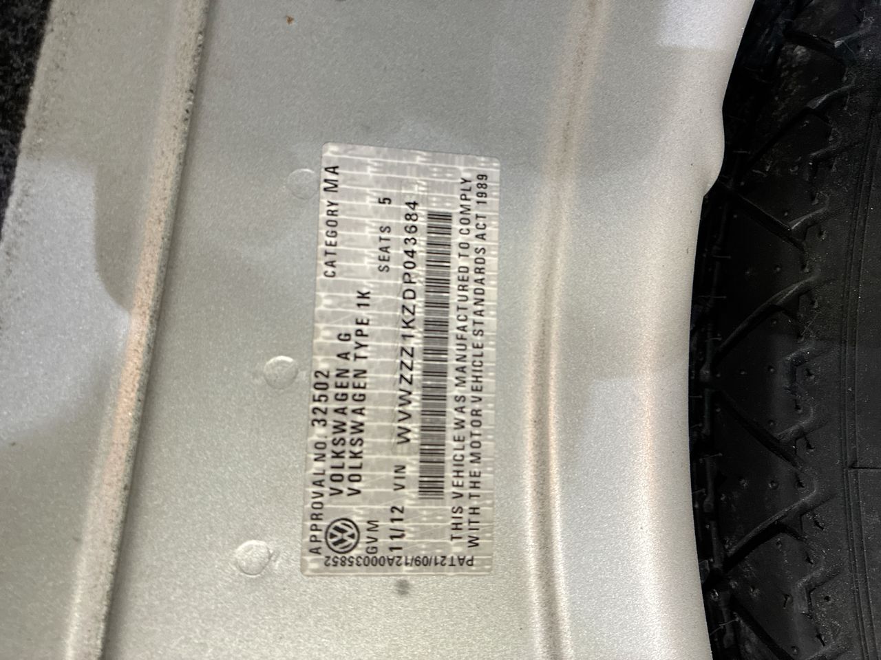 • VIN: WVWZZZ1KZDP043684