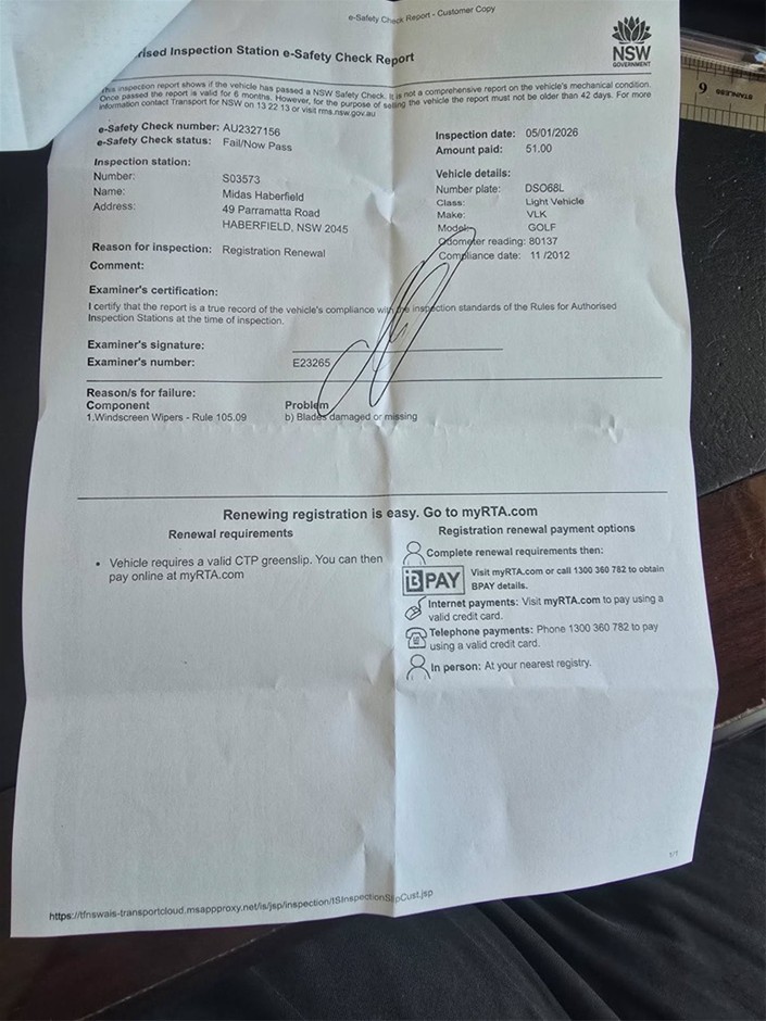 • Registration Expiry Date: 17-05-2026-Registration will only be transferred to the registered bidder who must hold a NSW Licence, otherwise, vehicle will be sold unregistered.