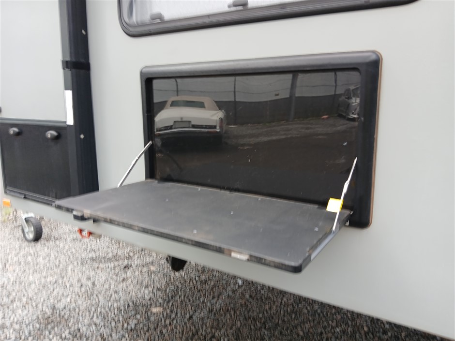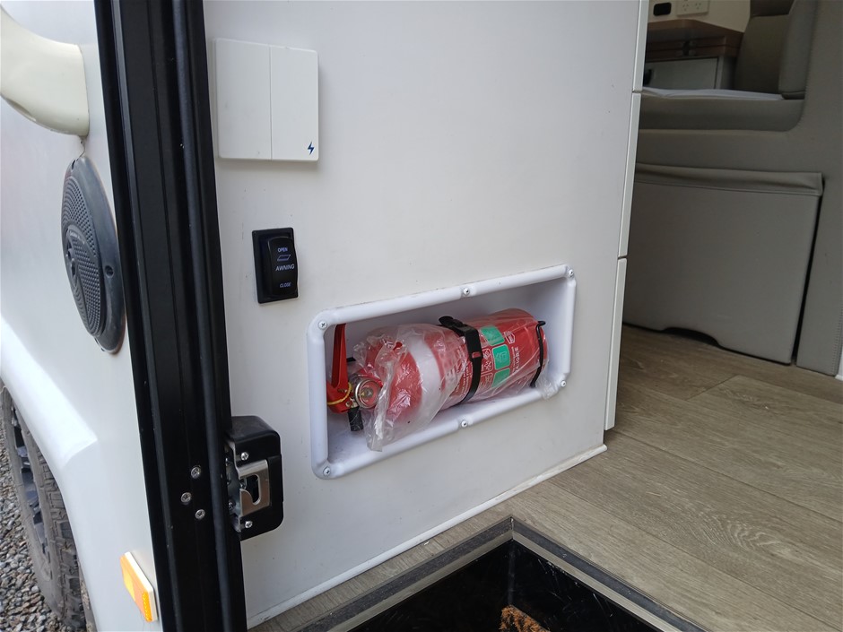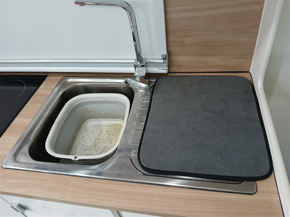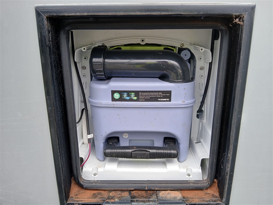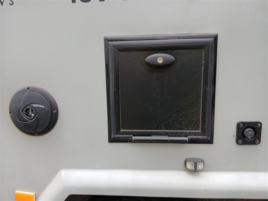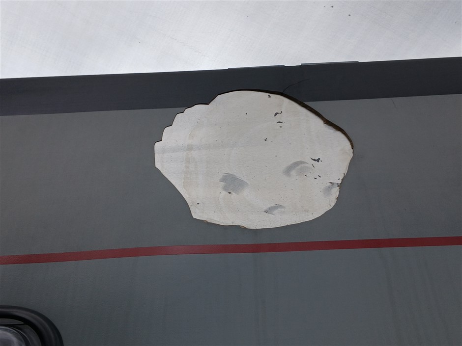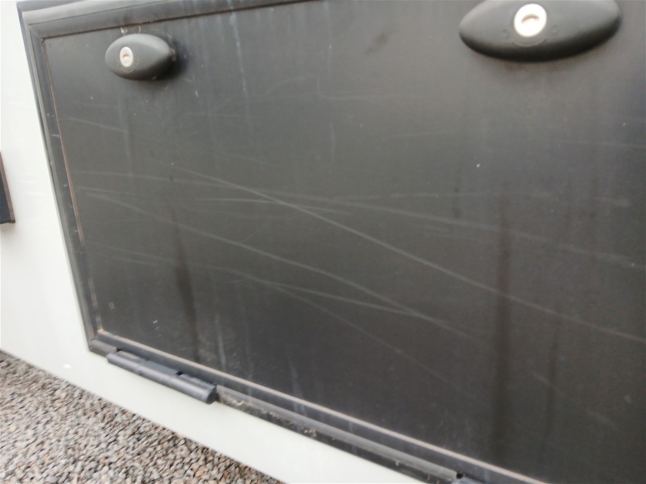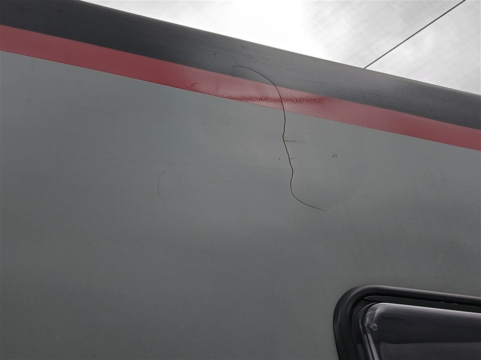 • Condition: Overall- General wear and tear. Evidence of use. Interior: Unclean, marks and scratches. Microwave, fridge/freezer and sink, slightly unclean. Toilet area, floor unclean. Exterior: Dents, rust, scrapes, marks and scratches. Left side has 2 major cracks [refer to images No. 20, 21, 22] Awning has some wear and tear.