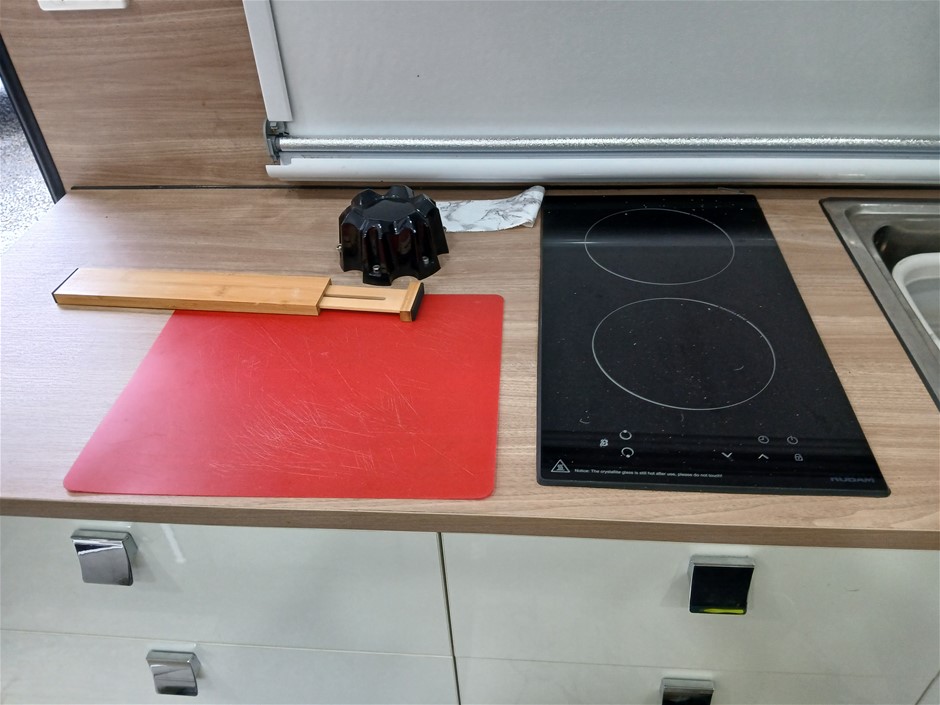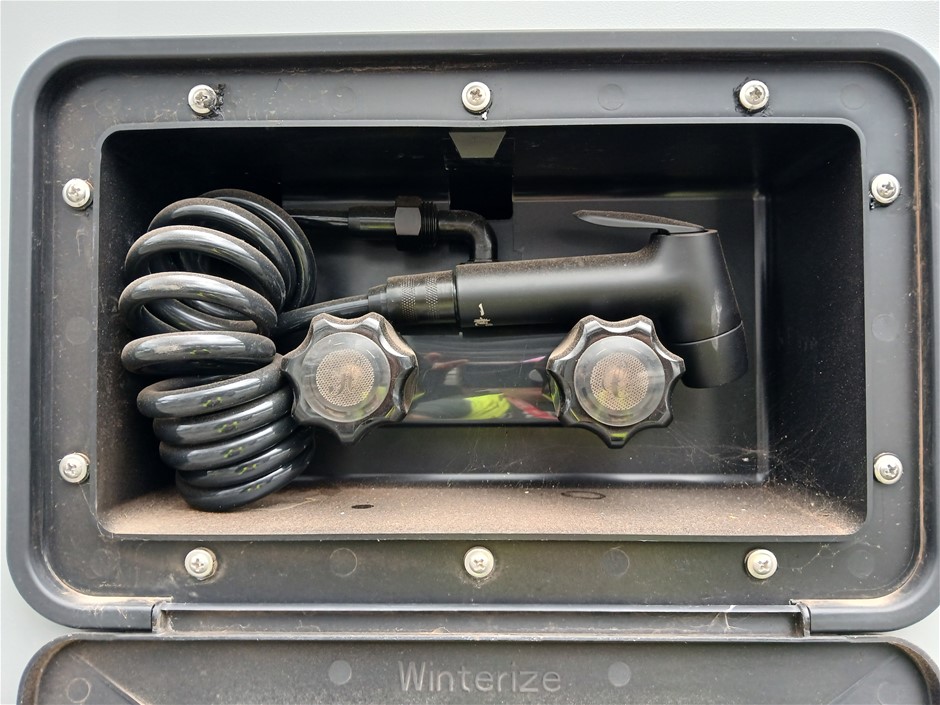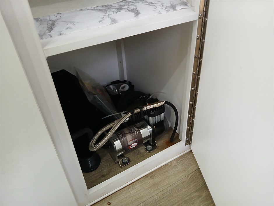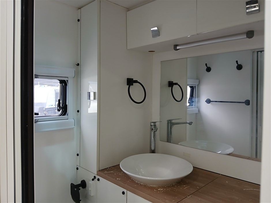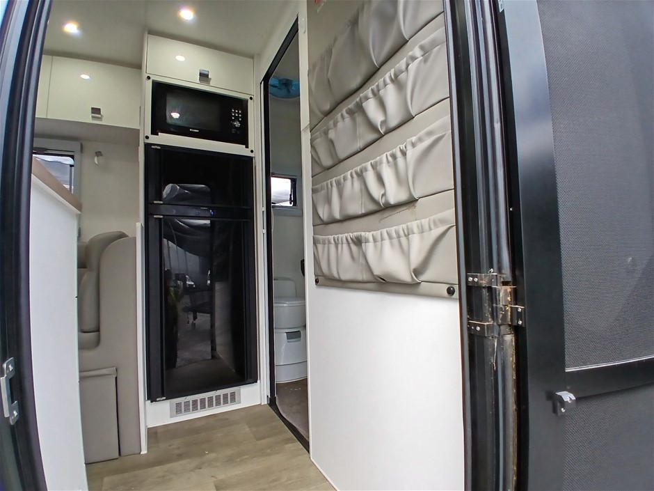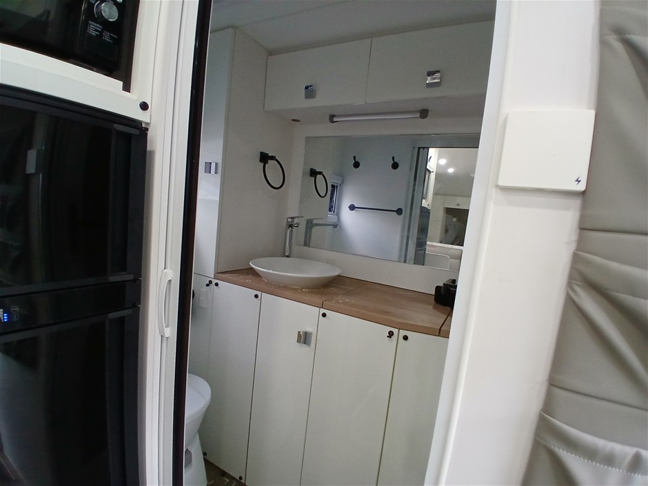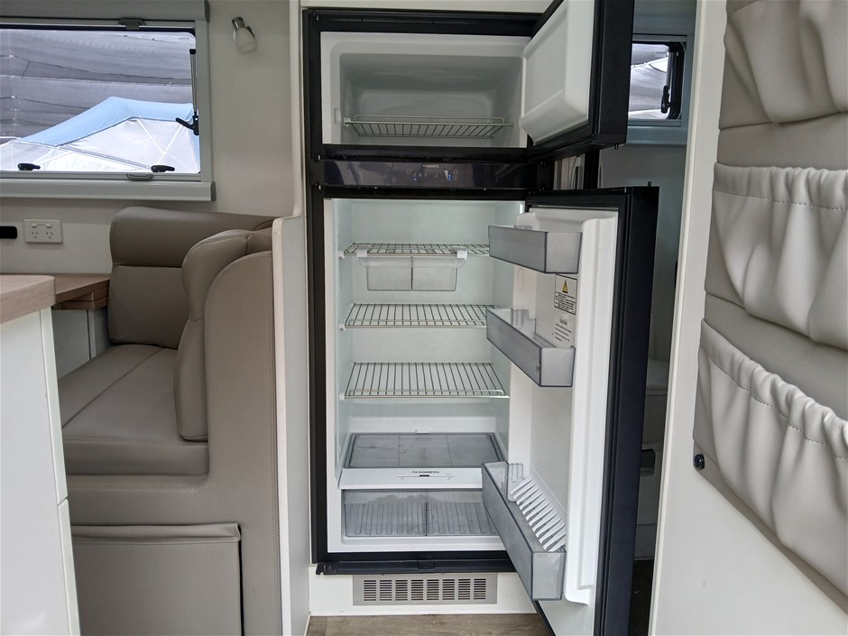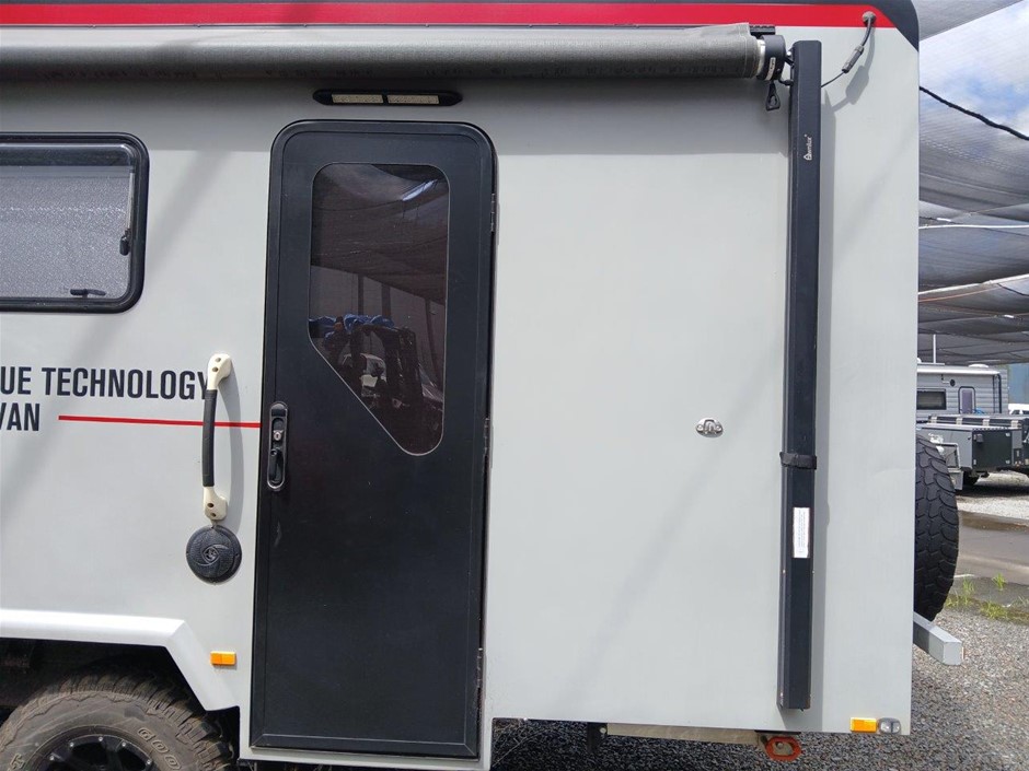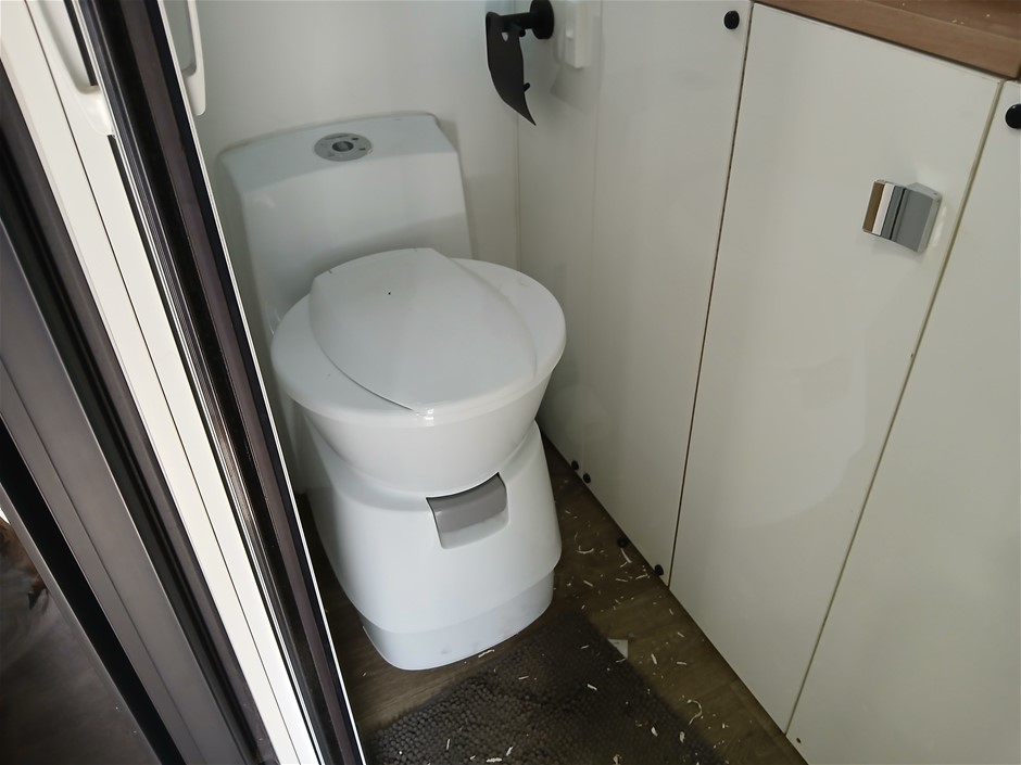 • Condition: Overall- General wear and tear. Evidence of use. Interior: Unclean, marks and scratches. Microwave, fridge/freezer and sink, slightly unclean. Toilet area, floor unclean. Exterior: Dents, rust, scrapes, marks and scratches. Left side has 2 major cracks [refer to images No. 20, 21, 22] Awning has some wear and tear.