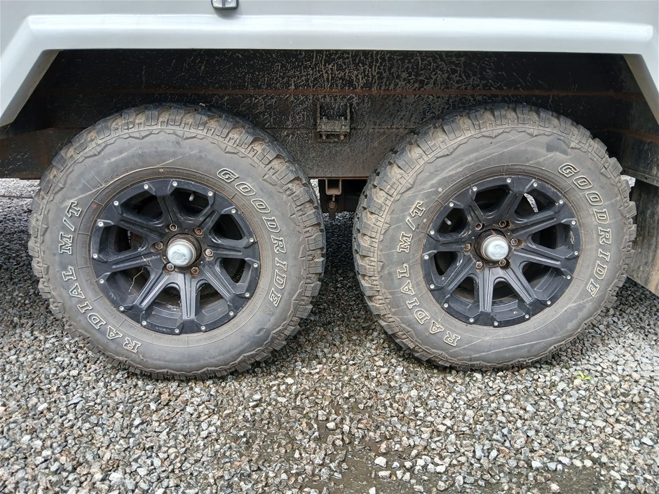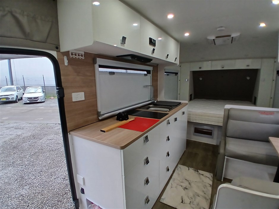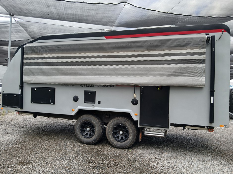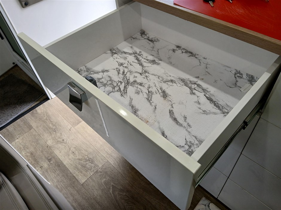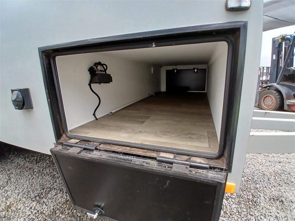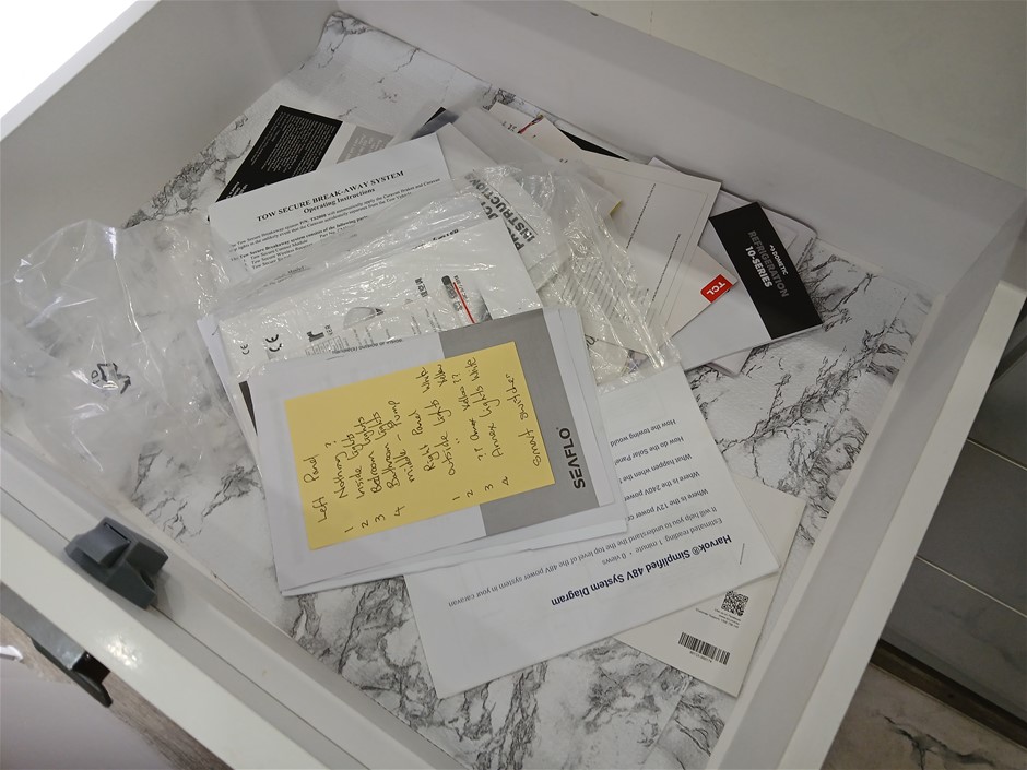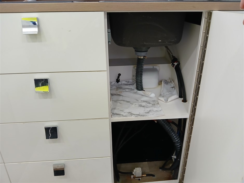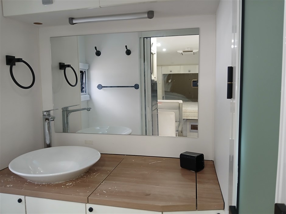 • Condition: Overall- General wear and tear. Evidence of use. Interior: Unclean, marks and scratches. Microwave, fridge/freezer and sink, slightly unclean. Toilet area, floor unclean. Exterior: Dents, rust, scrapes, marks and scratches. Left side has 2 major cracks [refer to images No. 20, 21, 22] Awning has some wear and tear.