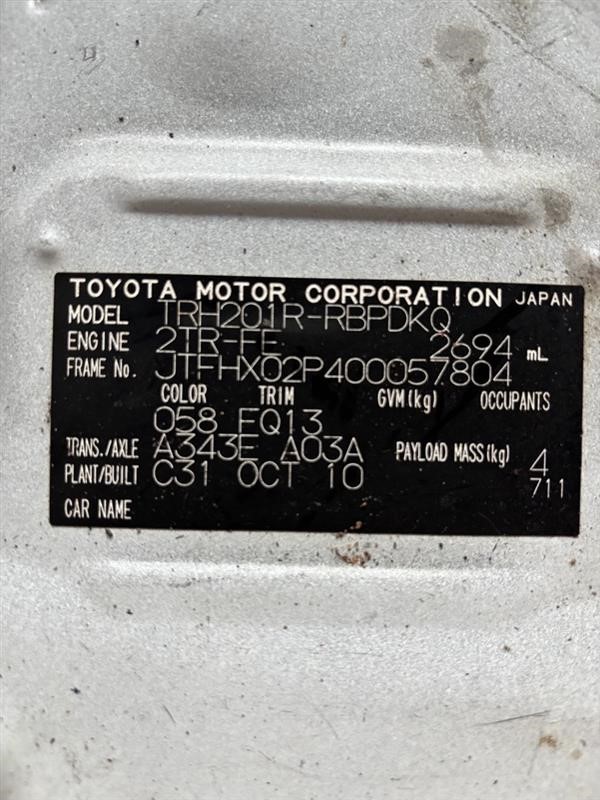 | Part of Sale | 2010 Toyota HI ACE FWD Manual - 5 Speed Van | ||||||||||||||