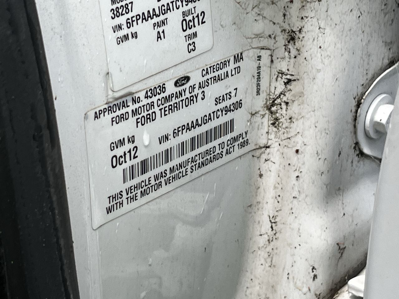 • VIN: 6FPAAAJGATCY94306