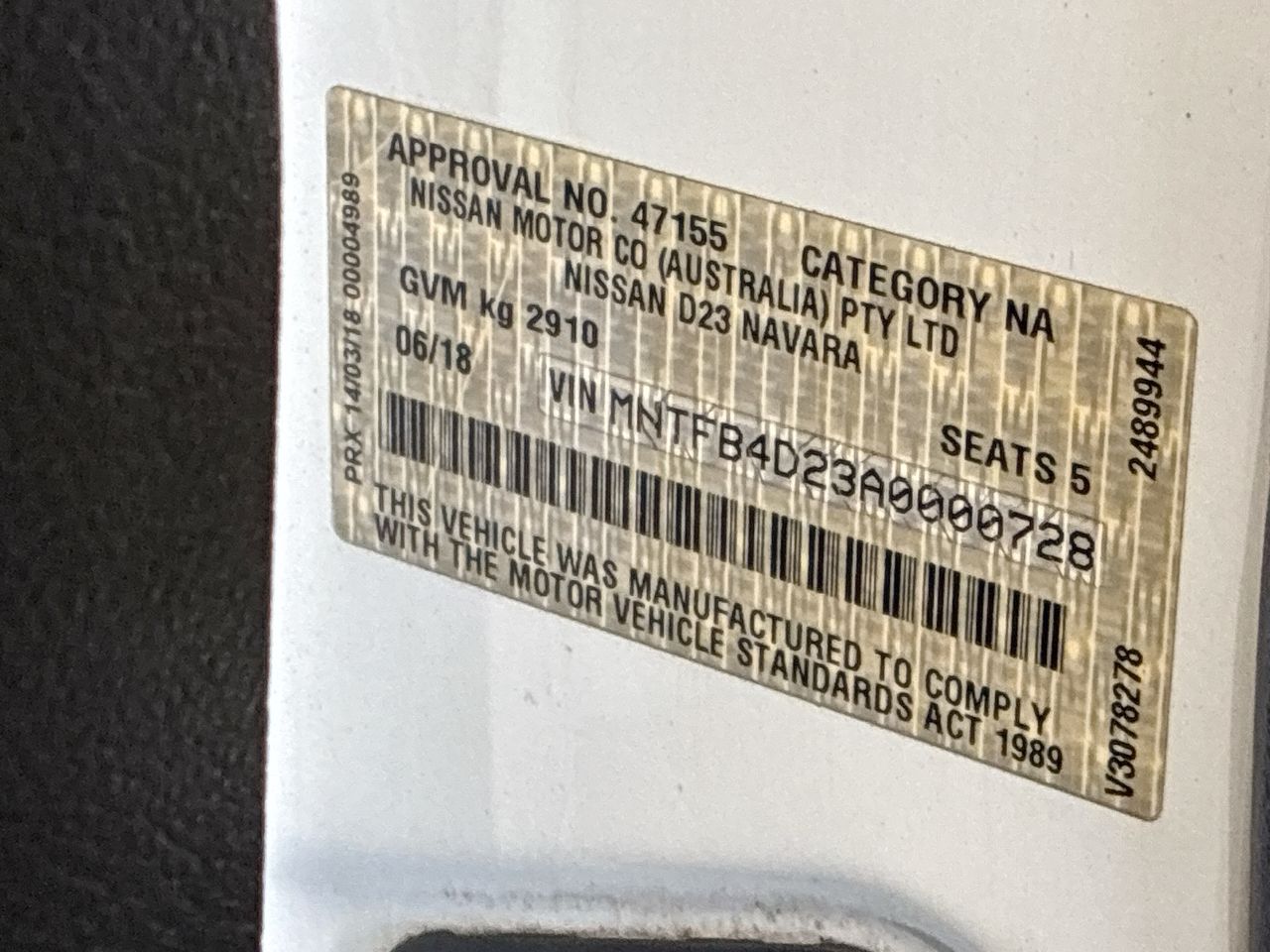 Part of Sale 2018 Nissan Navara 4X4 RX SERIES 2 Turbo Diesel Automatic Crew Cab Chassis
