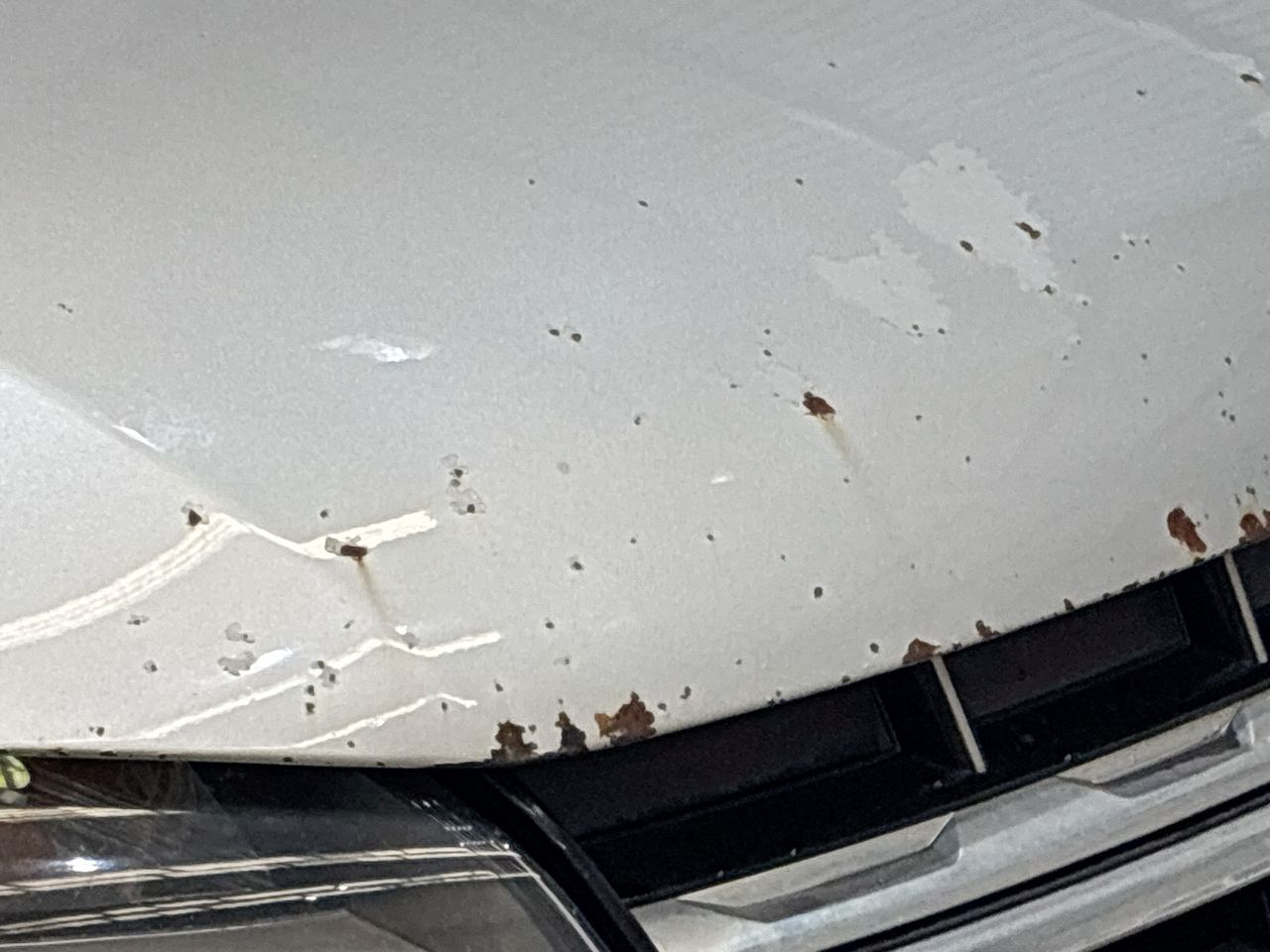 • Corrosion visible Spots on bonnet with paint peel