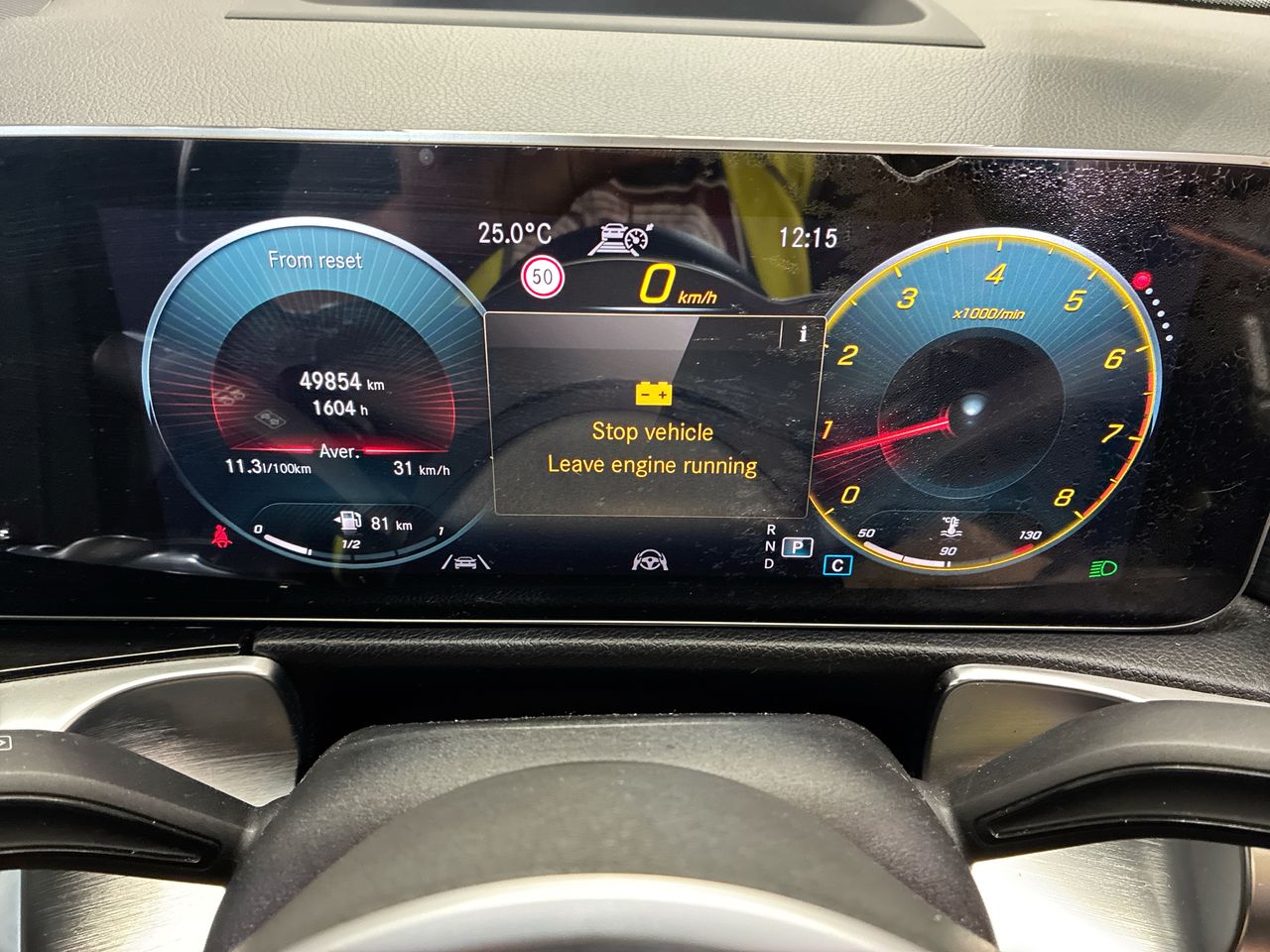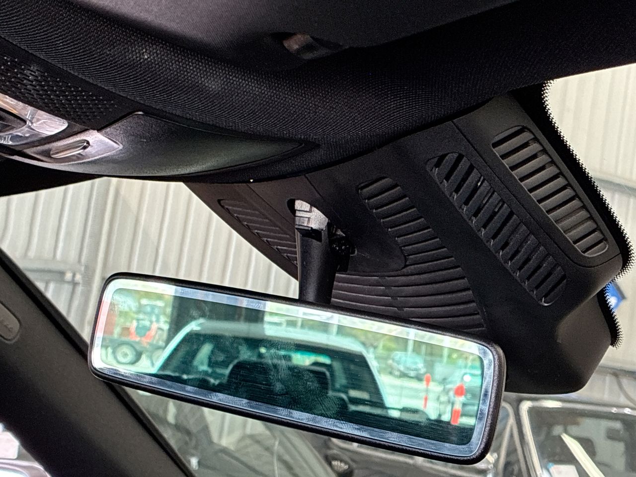 • Interior: Interior rear vision mirror broken. Damage on display screen, Rear seat head rest missing. Exterior: Battery warning light showing