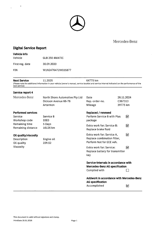 Part of Sale 2020 Mercedes Benz GLB250 4MATIC X247 Auto 8 Speed