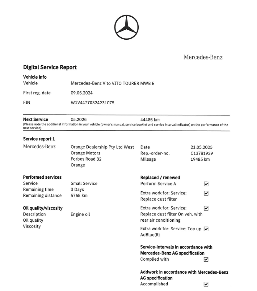 2023 Mercedes Benz Vito Tourer Turbo Diesel 9 auto 8 Seats People Mover