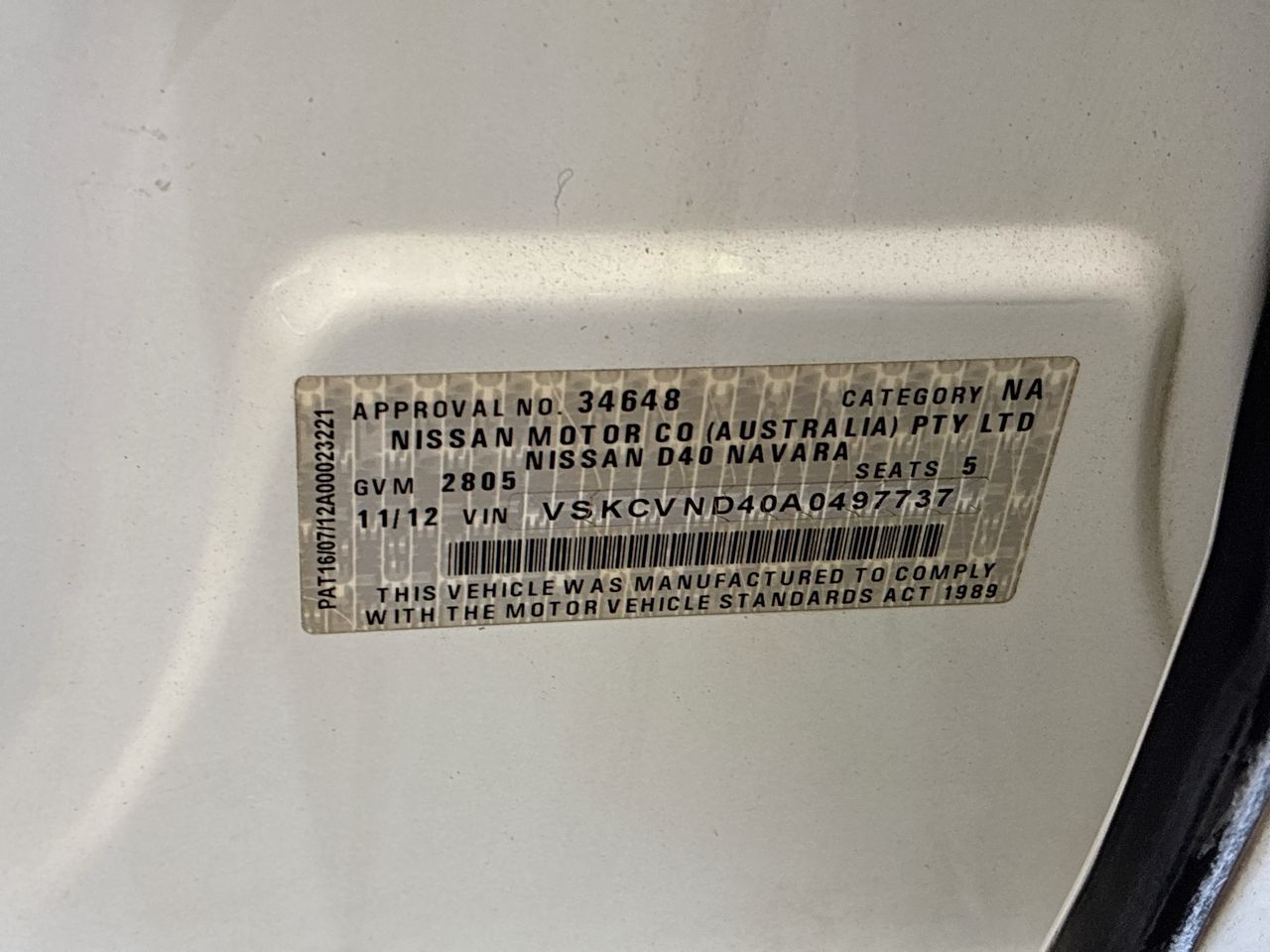 | Part of Sale | 2012 Nissan Navara 4X4 ST D40 Turbo Diesel Manual Dual Cab | ||||||||||||||