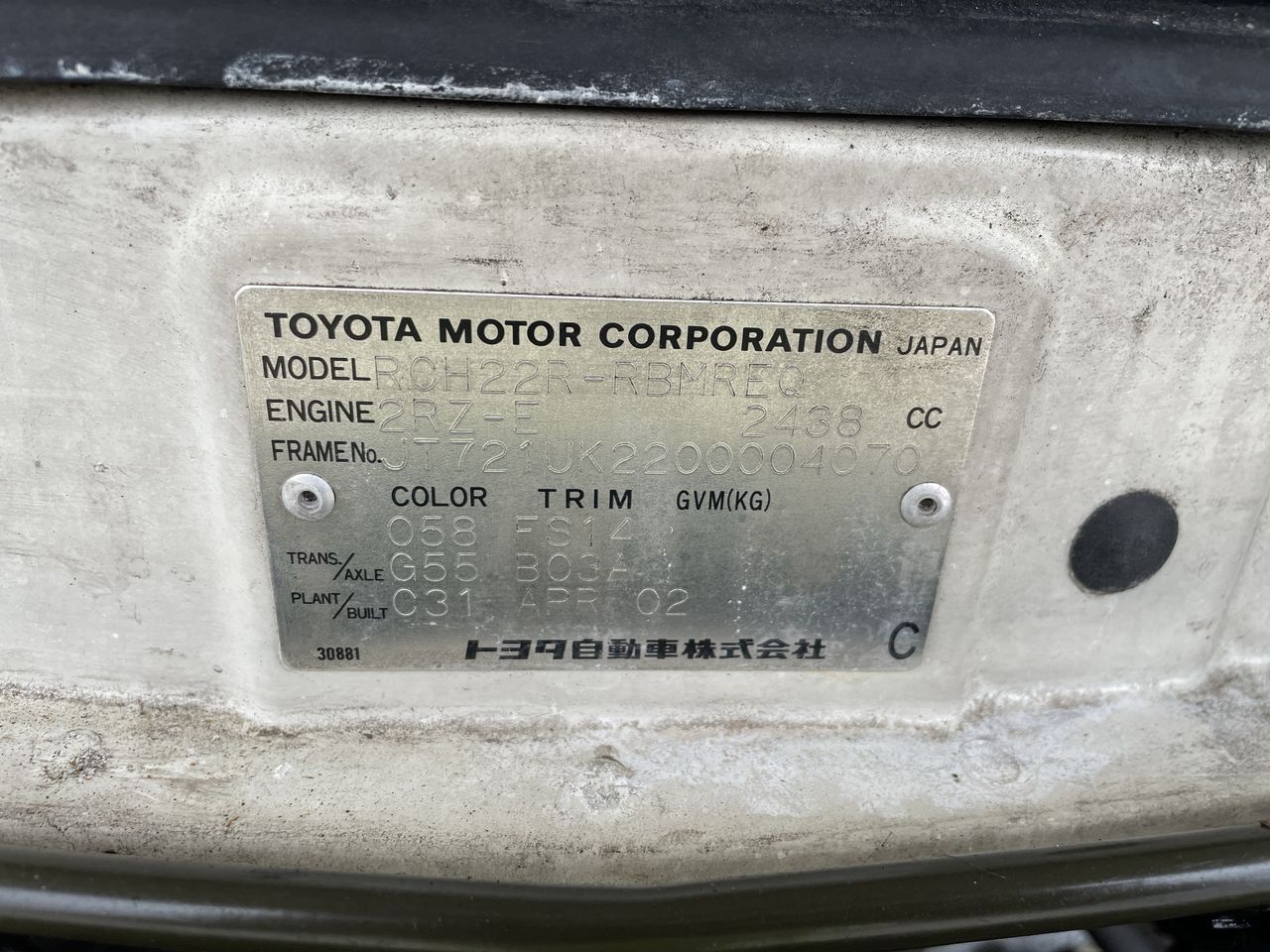 | Part of Sale | 2002 Toyota HiAce SBV LWB RCH22R Manual Van | ||||||||||||||