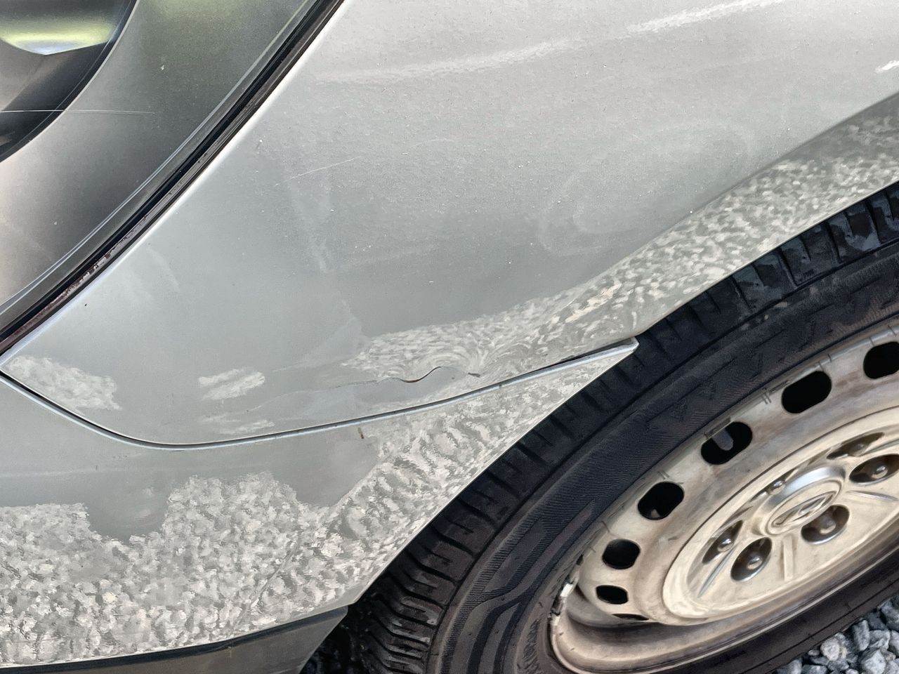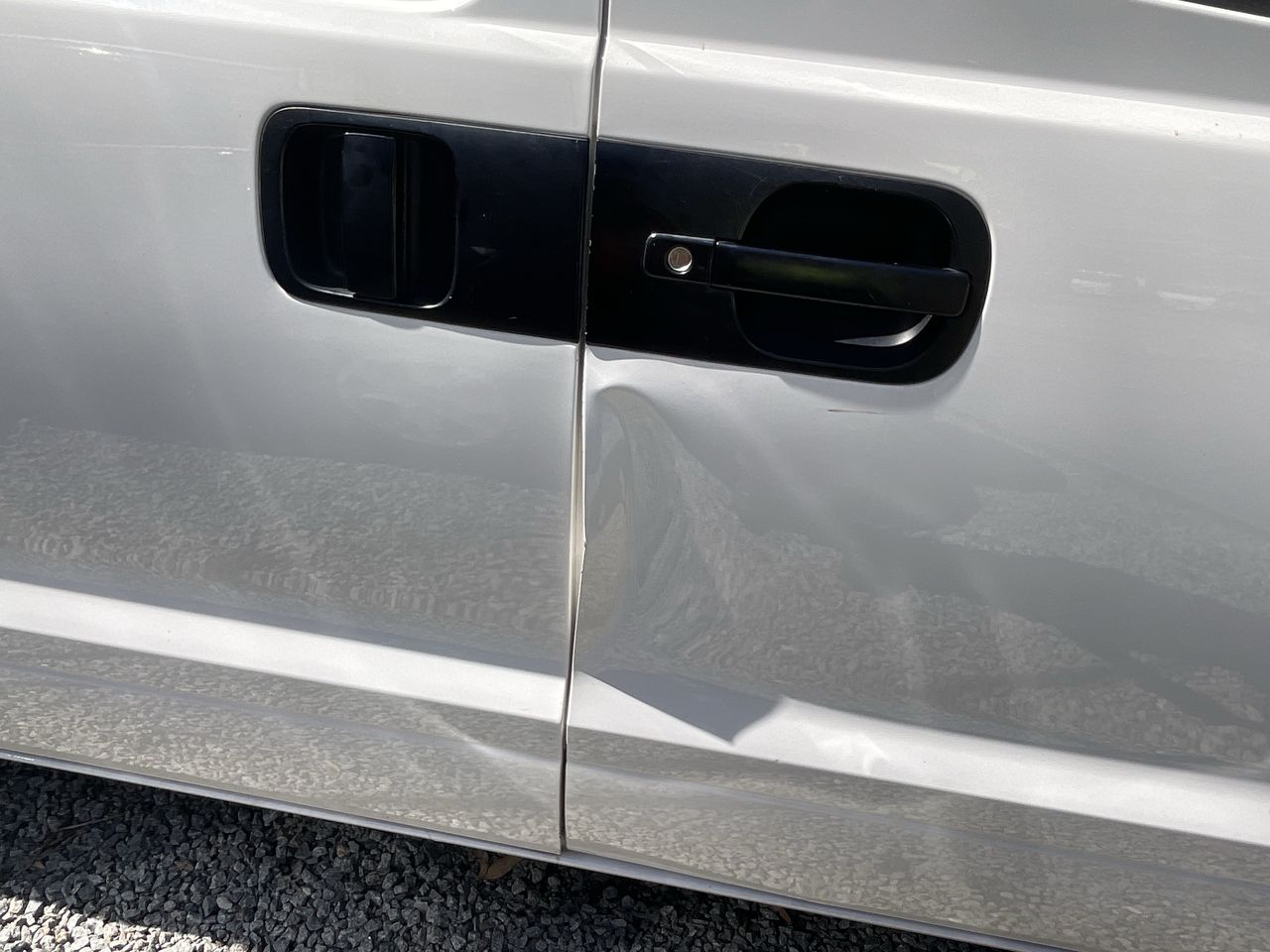 • Large Dent on Drivers front door, drivers quarter panel, roof, tailgate, passenger quarter, and passengers sliding door