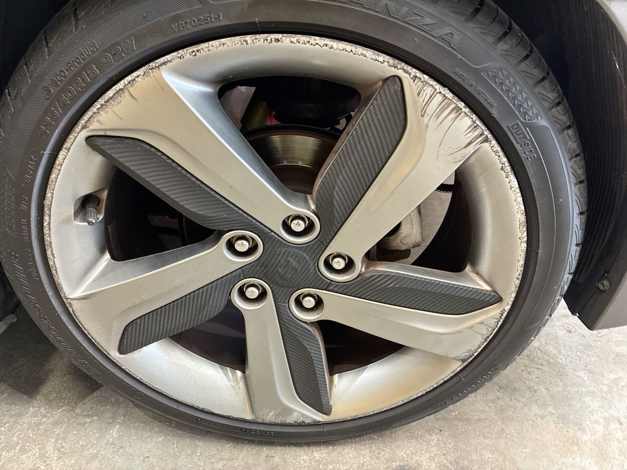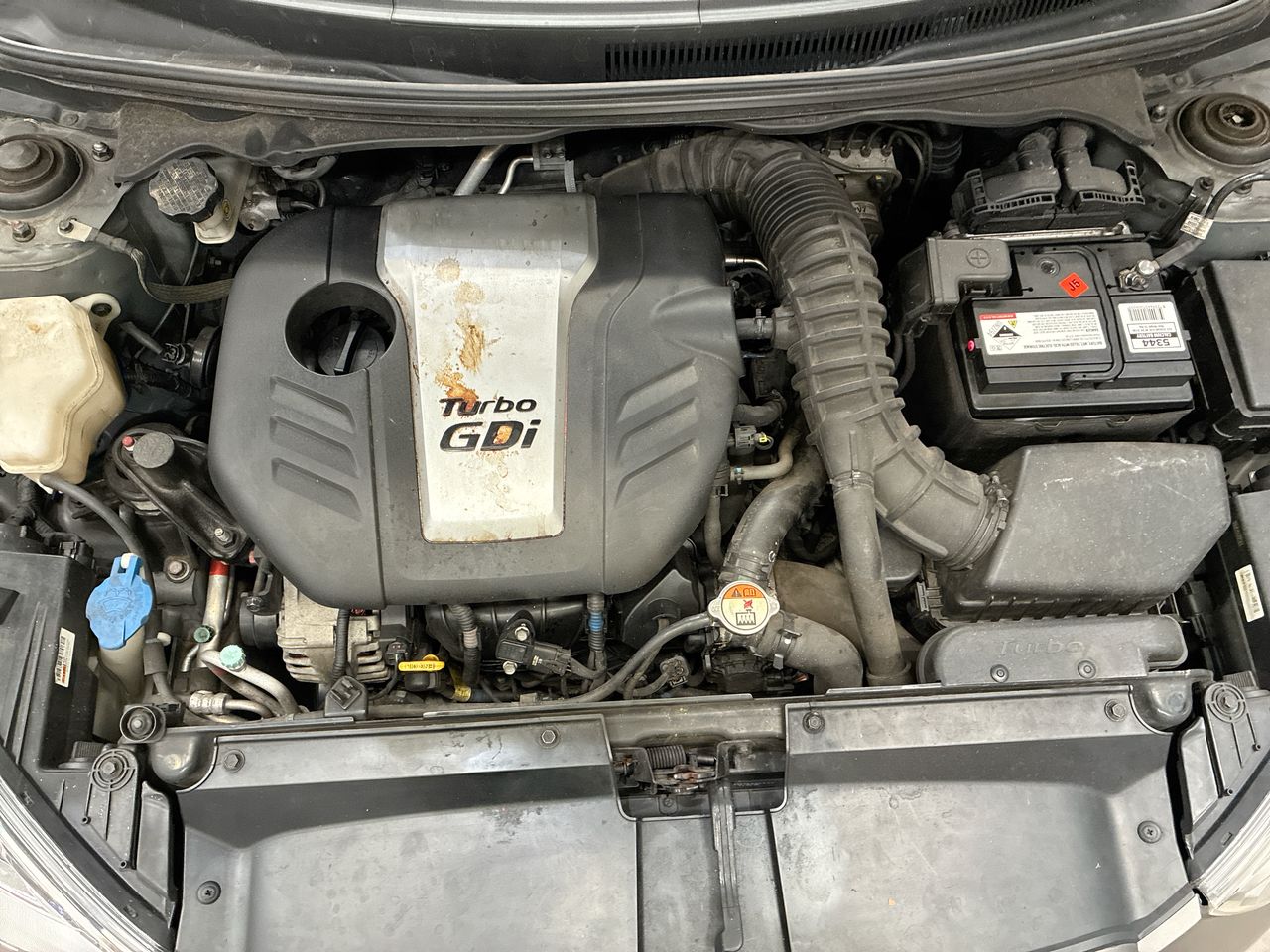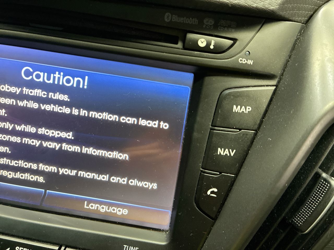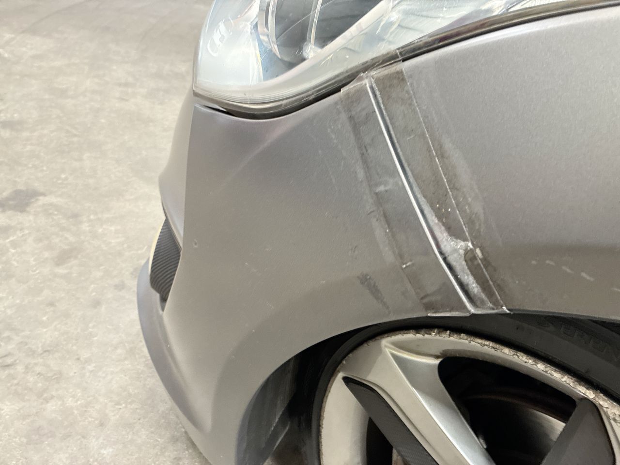 • Interior: Touch screen fault in radio. TPMS fault light showing , Exterior: Front bumper bar secured with tape. Long crank time when starting