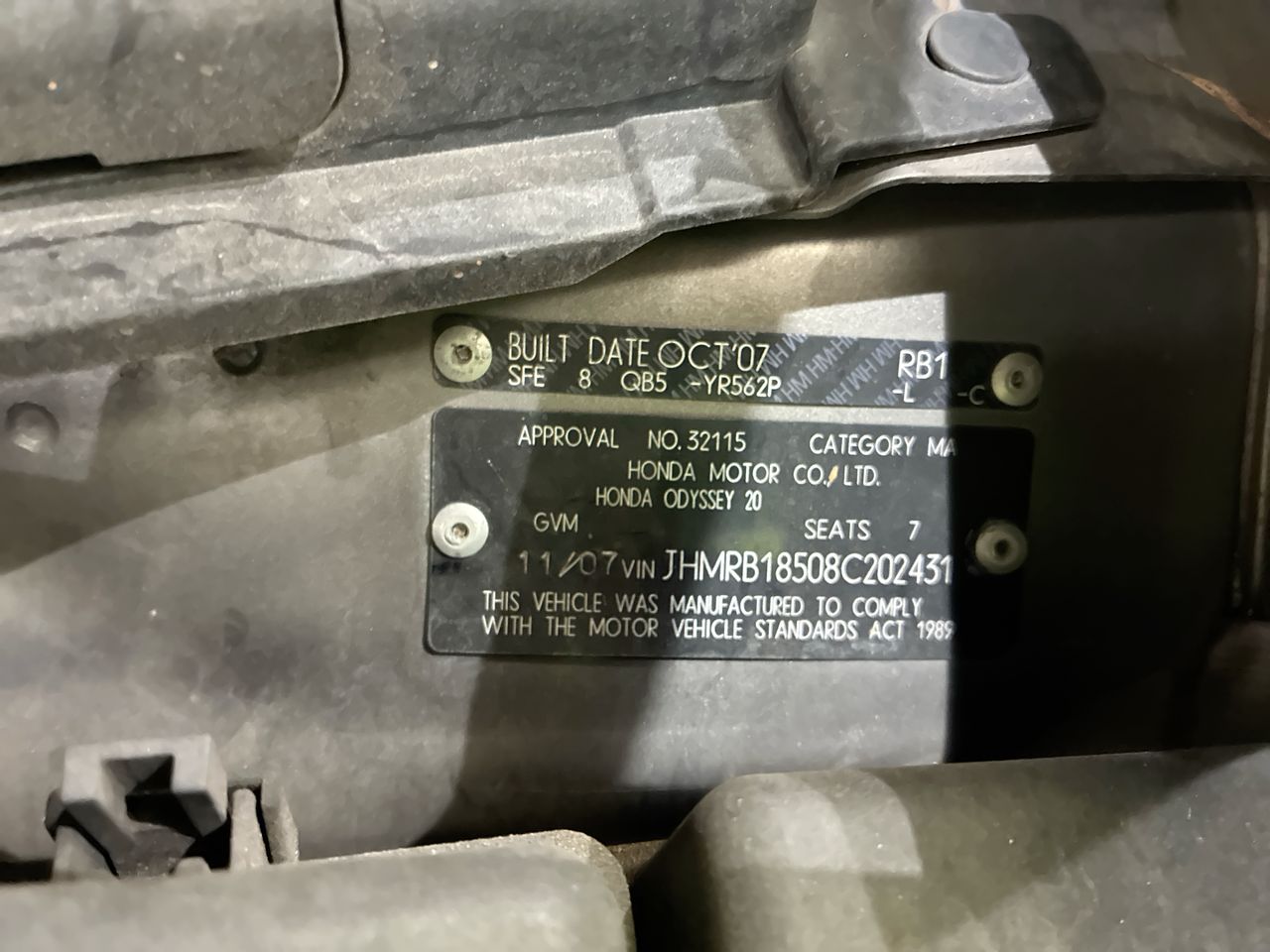 • VIN: JHMRB18508C202431