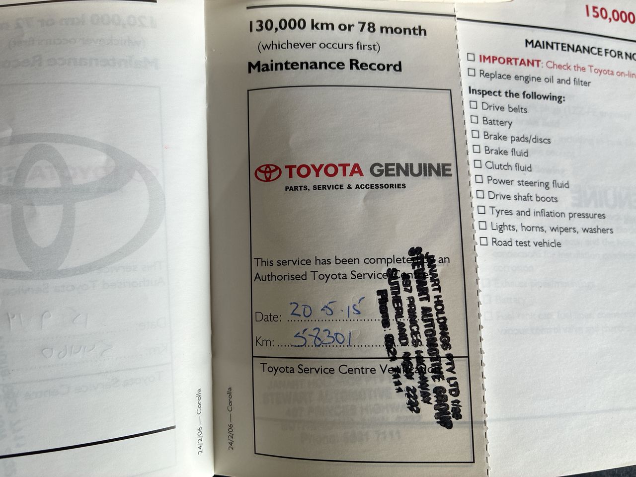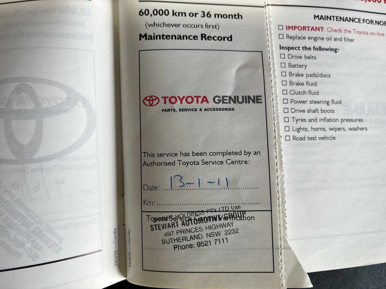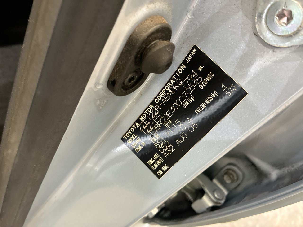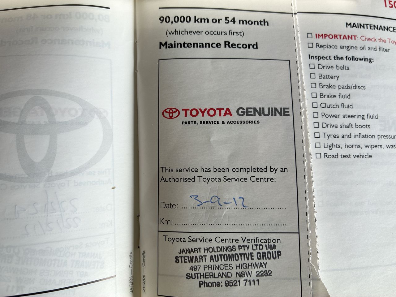 Part of Sale 2006 Toyota Corolla Conquest ZZE122R Manual Sedan