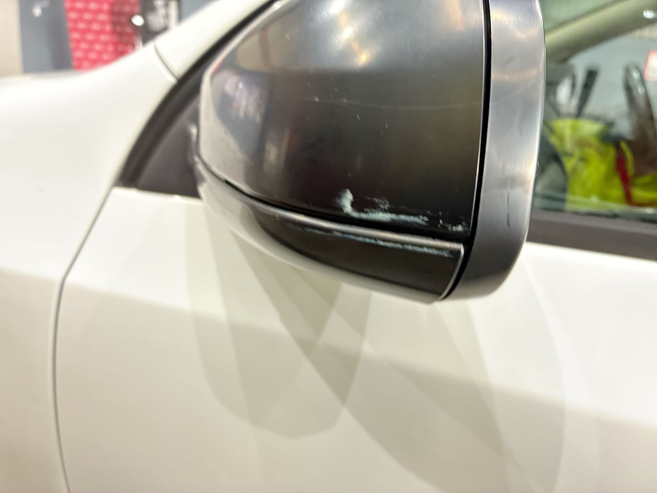 • Interior: Steering wheel worn and its column unable to adjust, Drivers door rubber trim worn., Exterior: visible chips in paintwork, Scuffs on side panel and passenger side mirror.