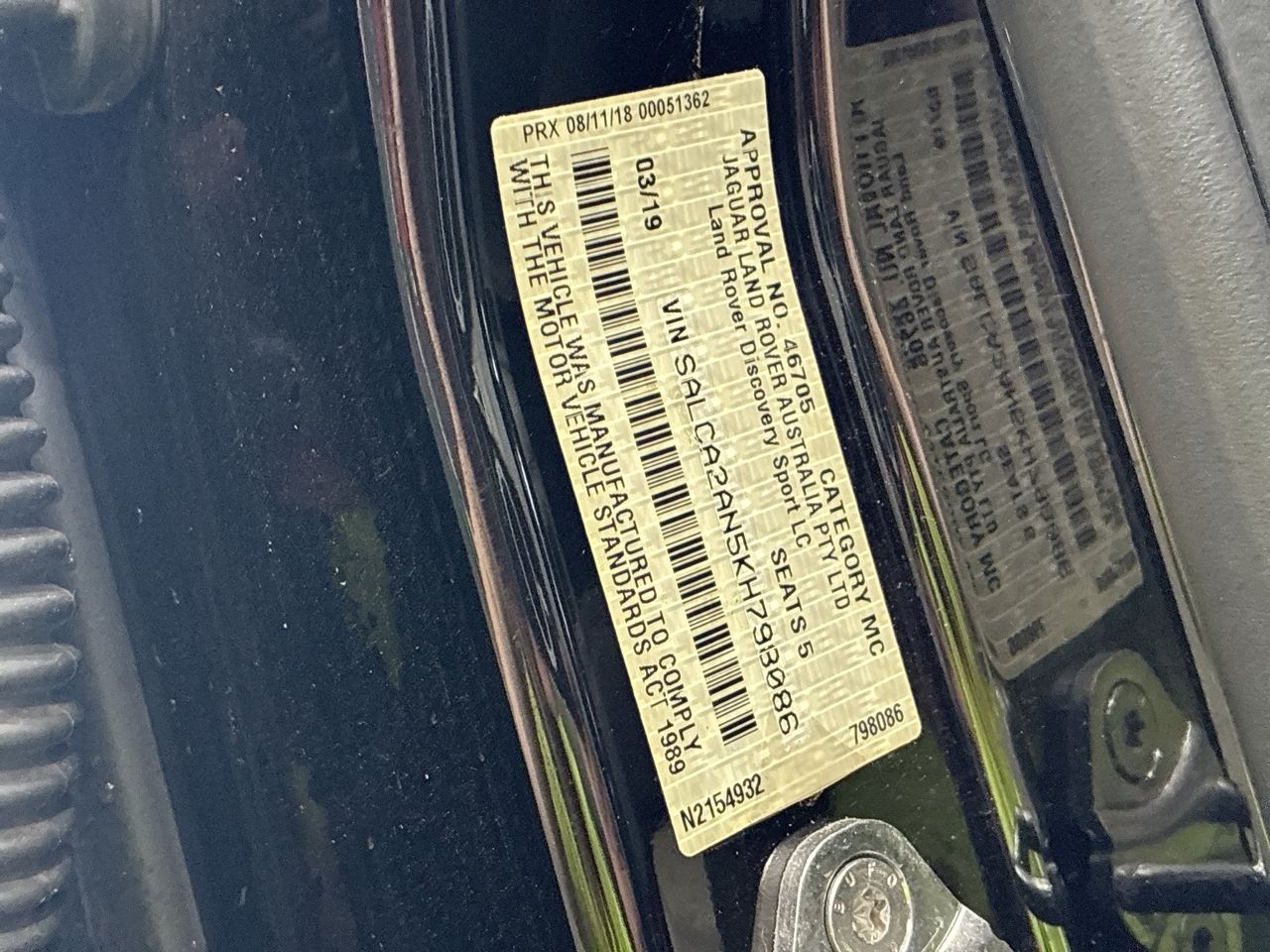 • VIN: SALCA2AN5KH798086