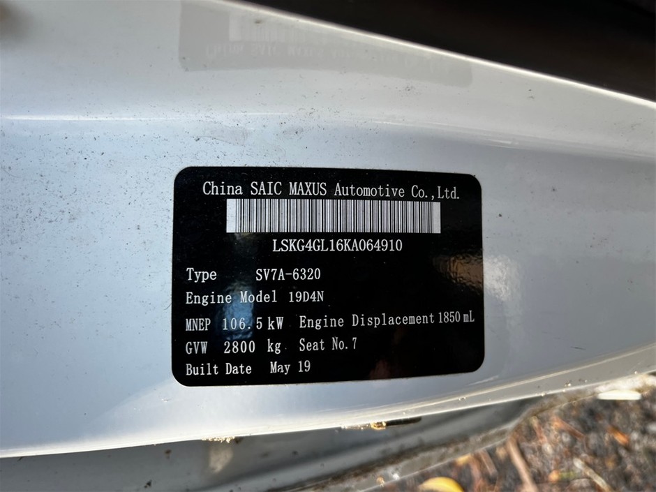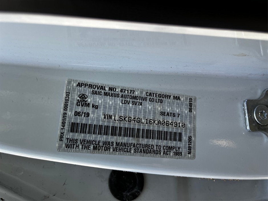 Part of Sale 2019 LDV G10 Auto 7 Sts People Mover