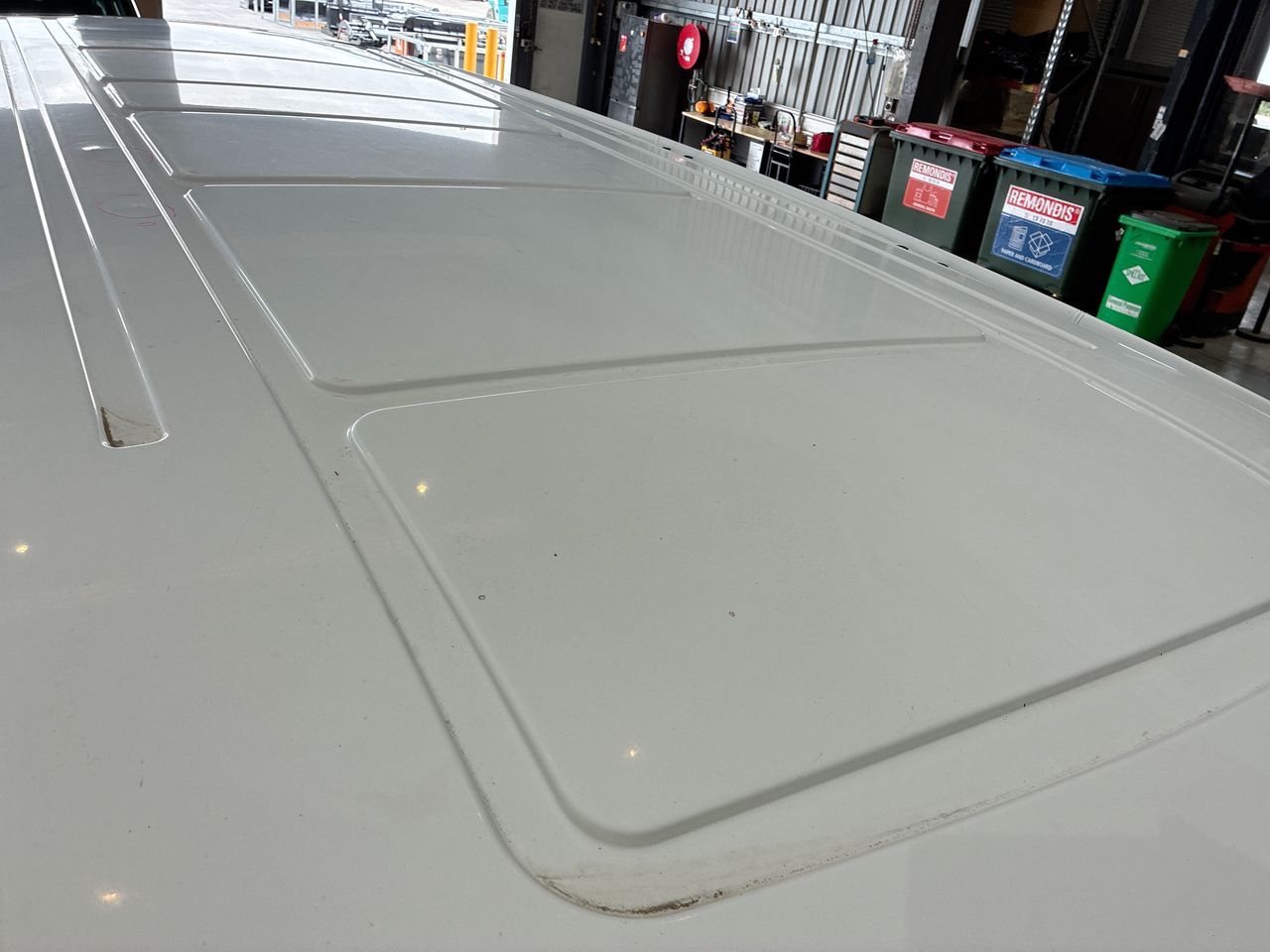 • Interior: Hoodlining stained , Exterior: Auxiliary battery malfunction message displayed, stone chips on bonnet and guards, paint faded on various panels, rear step damaged