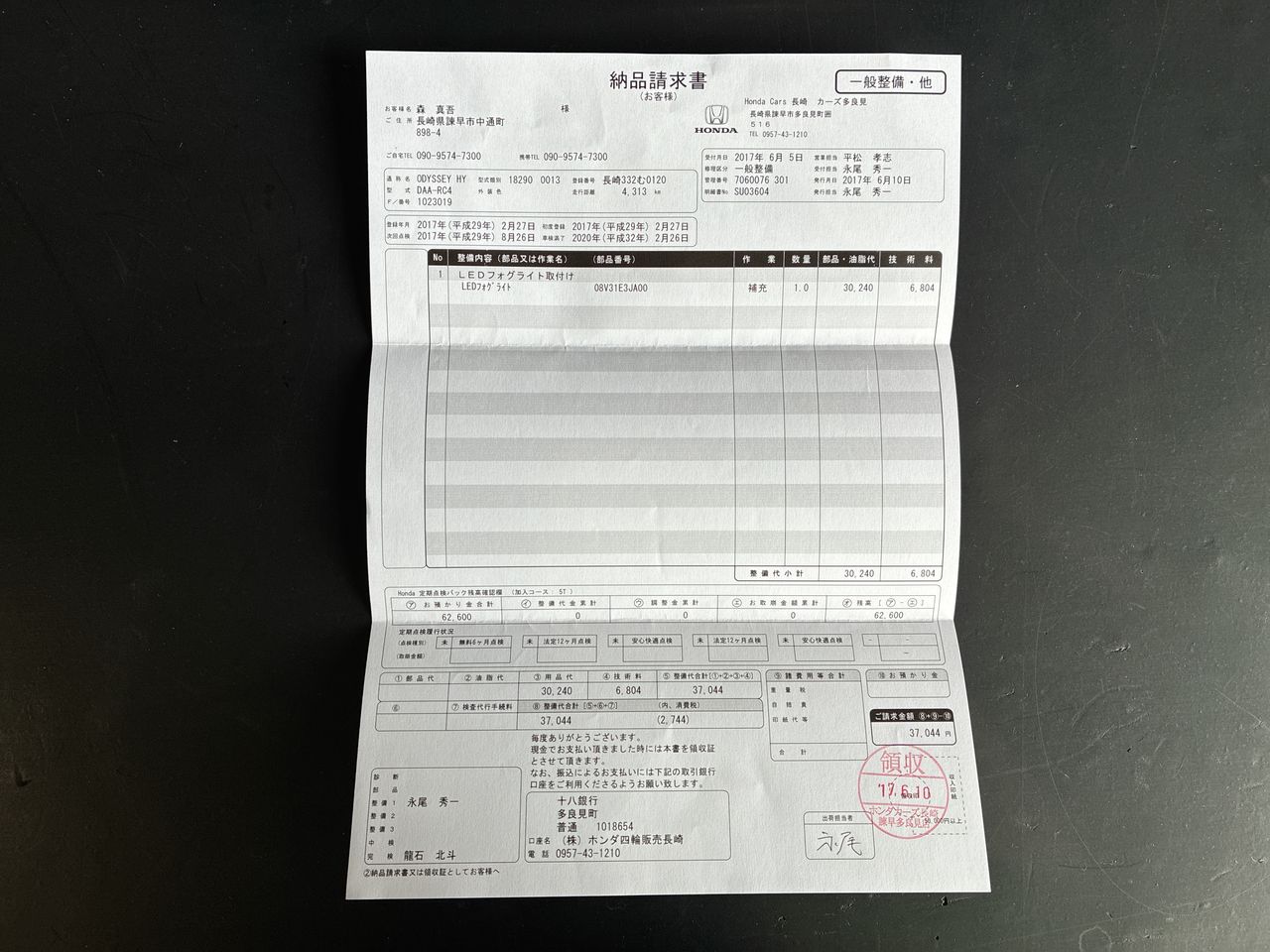 • Indicated Odometer Reading: 134353