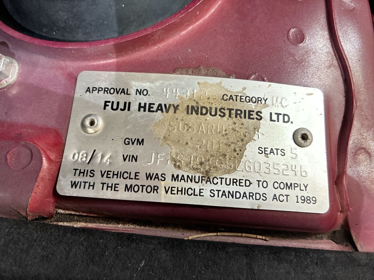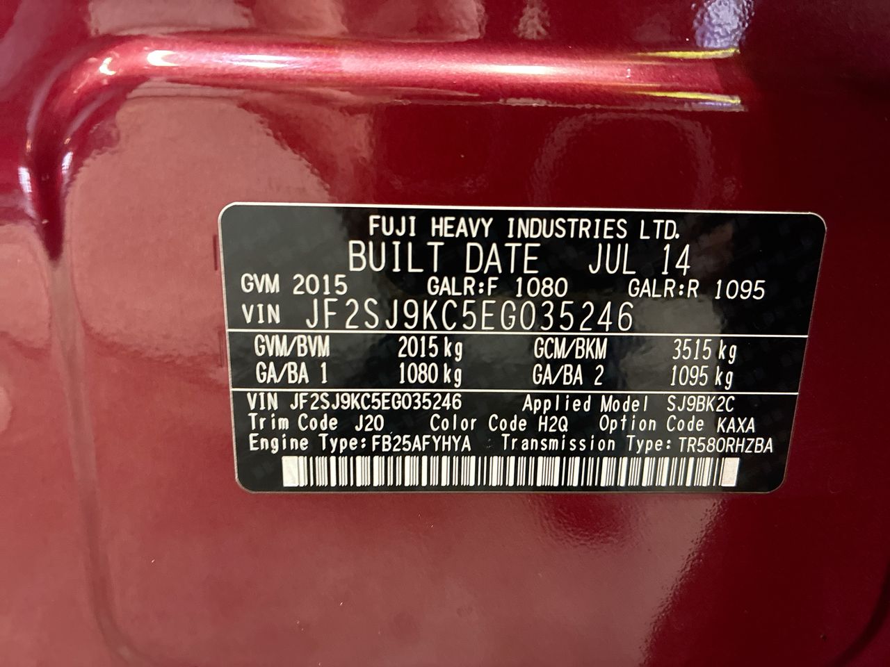 • VIN: JF2SJ9KC5EG035246