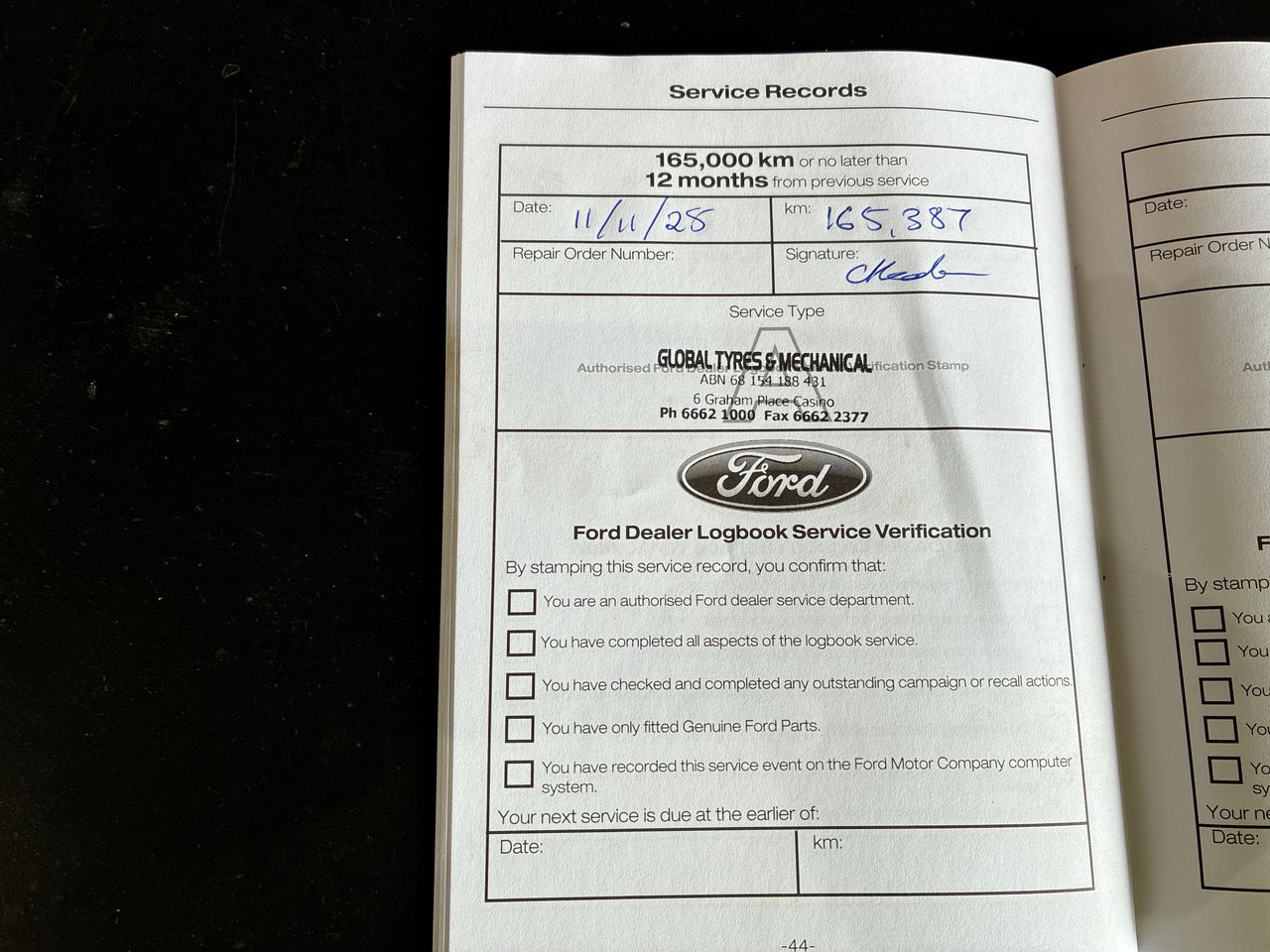 • Service History: Partial