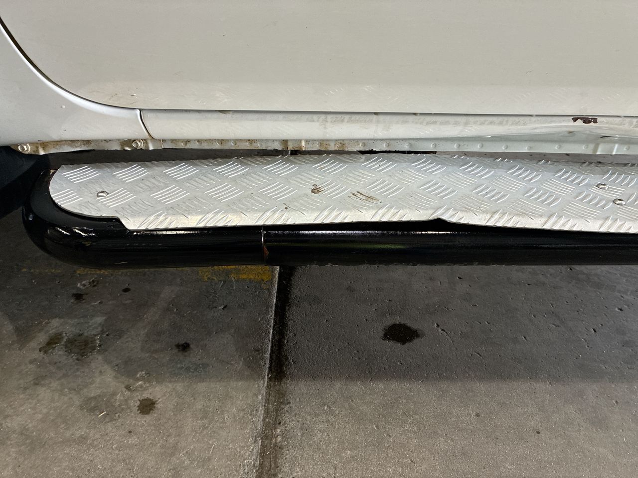 • Interior: Washer fluild low warning light on, Centre dash vents adrift, rear seat bottom cushion removed, Exterior: visible small scratches and chips in paintwork, Damages on rear tray and side steps