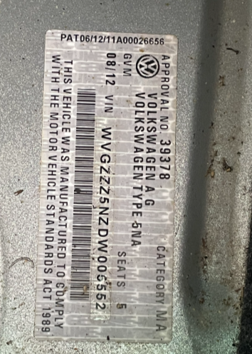 (SN:WVGZZZ5NZDW005552) (268634-4)