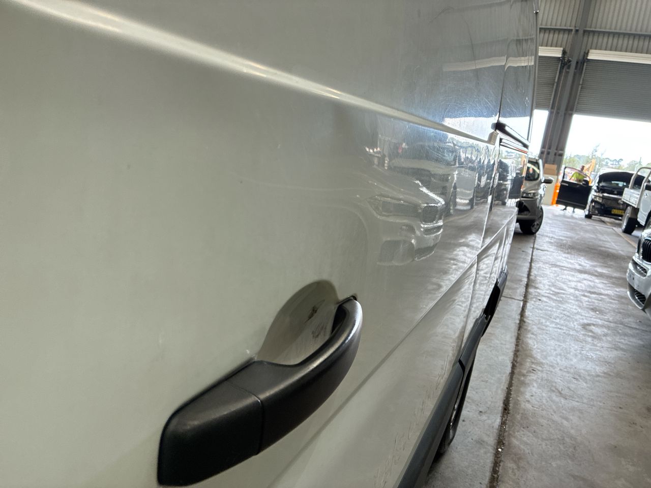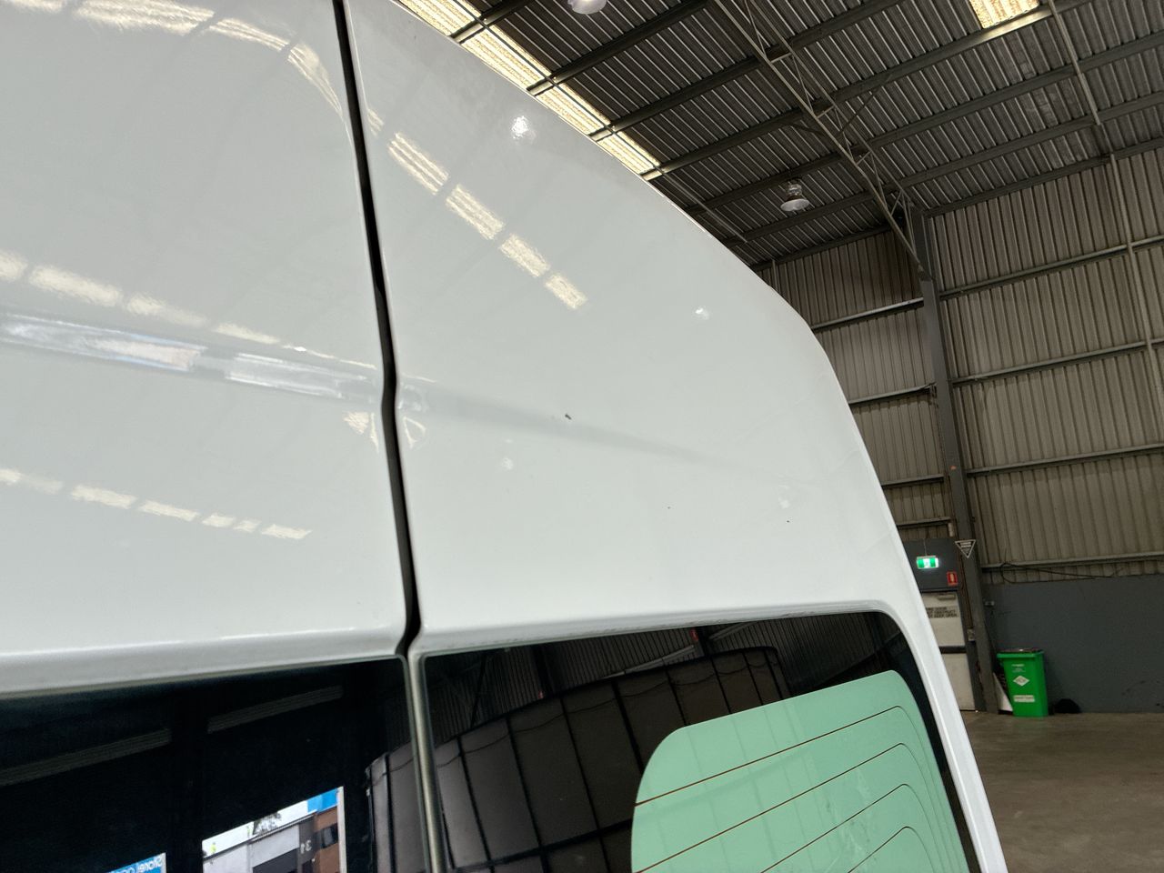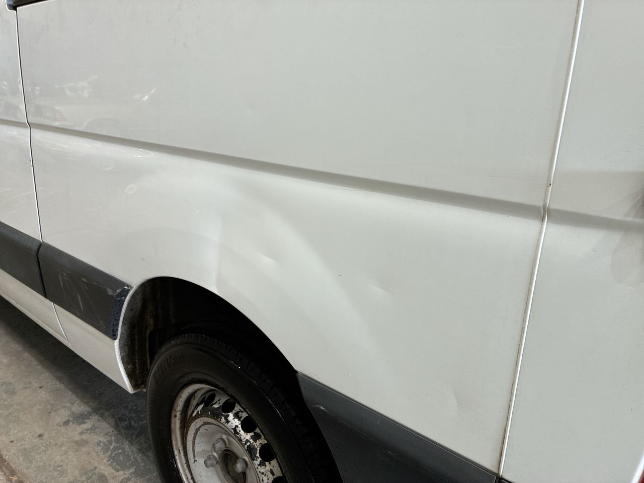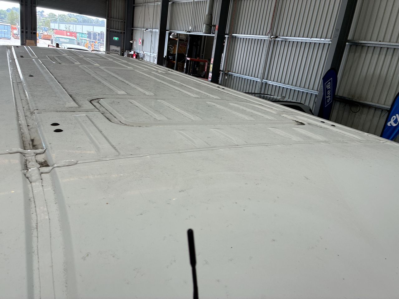 • Large Dent on Passenger side rear barn door, driver side rear quarter, passenger side rear quarter