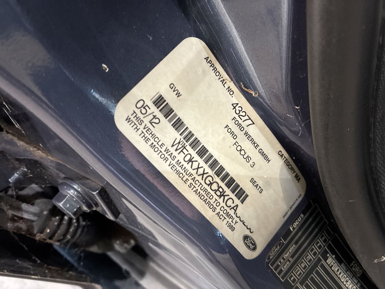 • VIN: WF0KXXGCBKCA35253
