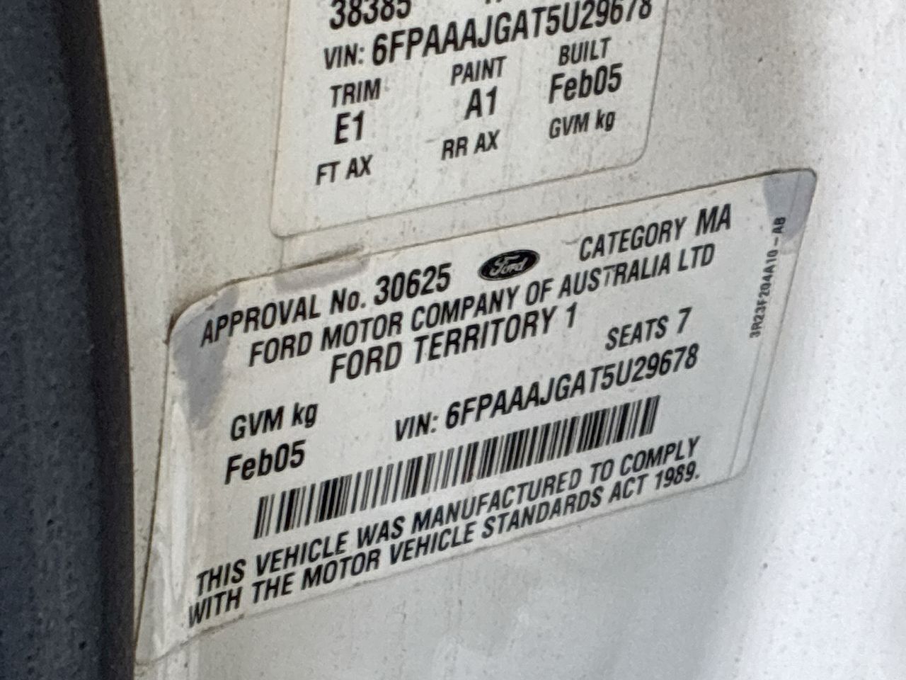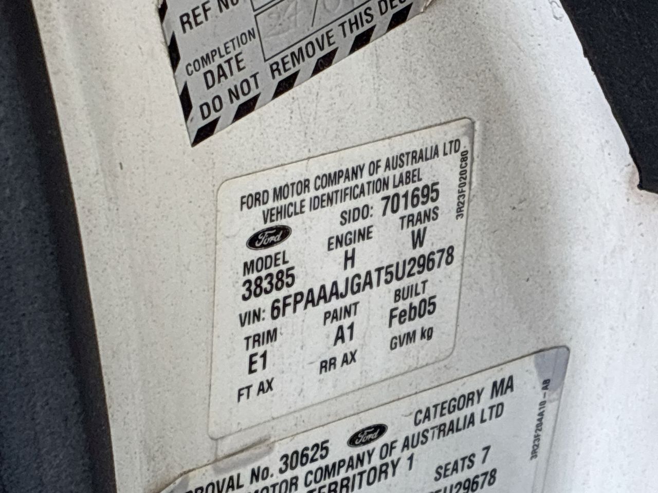 • VIN: 6FPAAAJGAT5U29678