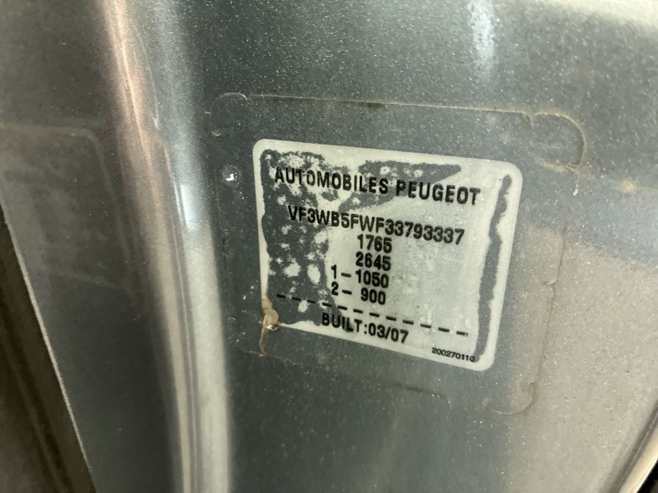 • VIN: VF3WB5FWF33793337