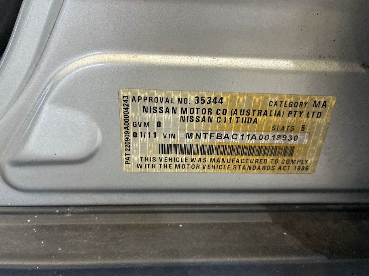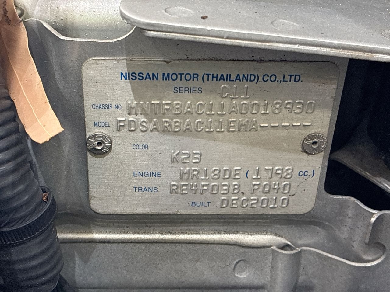 • VIN: MNTFBAC11A0018930