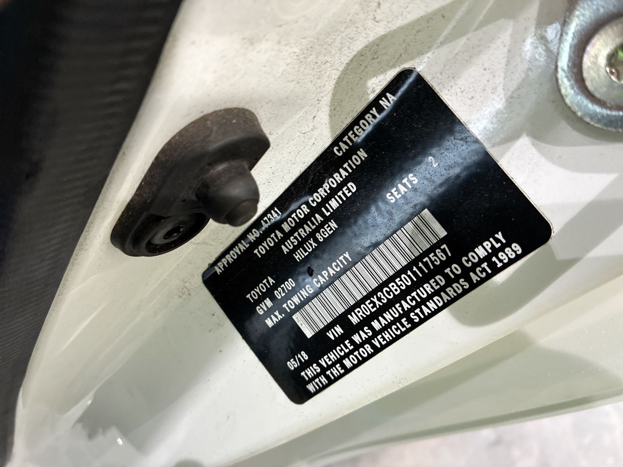 2018 Toyota Hilux 4X2 WORKMATE TGN121R Automatic Cab Chassis