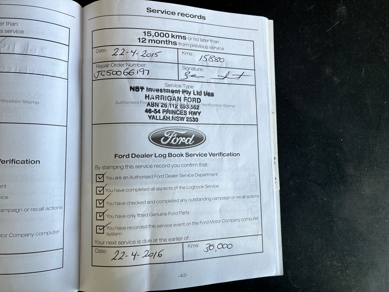 • Service History: Partial