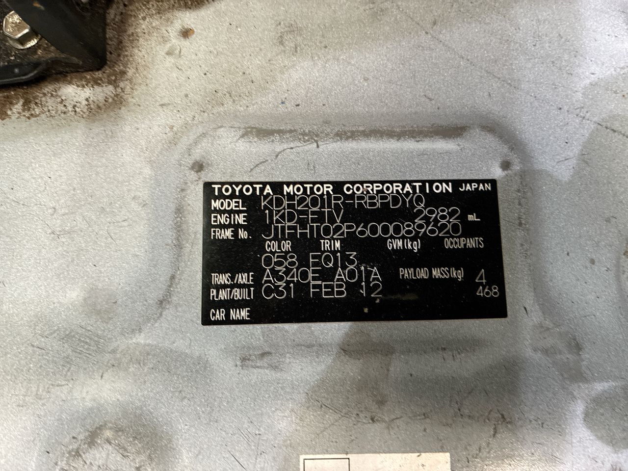 Part of Sale 2012 Toyota HiAce LWB KDH201R Turbo Diesel Automatic Van