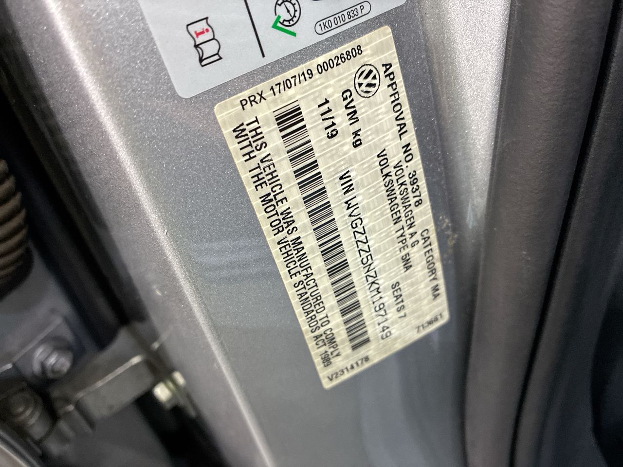 • VIN: WVGZZZ5NZKM197149