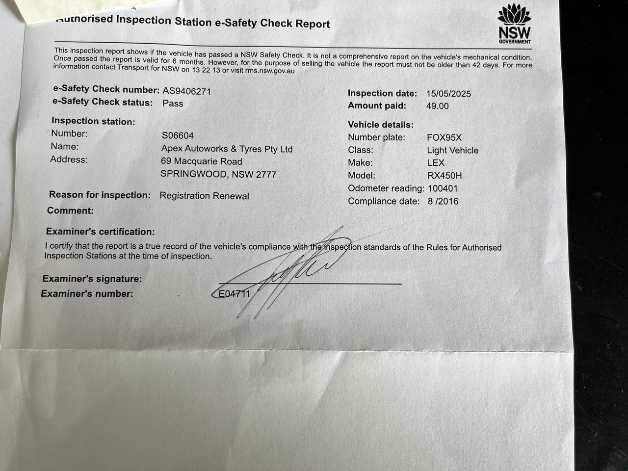 A list of authorised vehicle inspection stations is available on the RMS website CLICK HERE