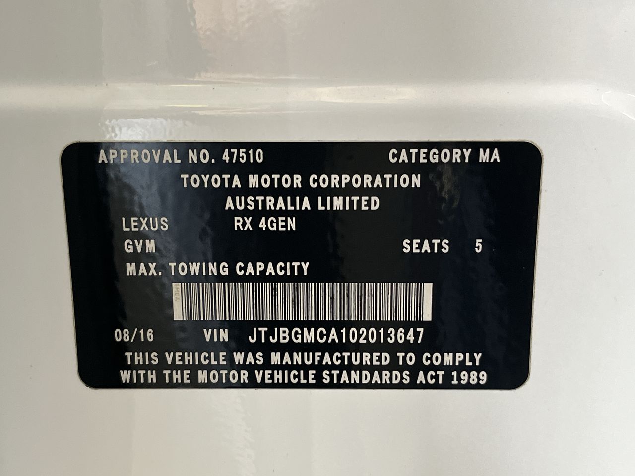 2016 Lexus RX RX450h F SPORT GYL25R CVT Wagon