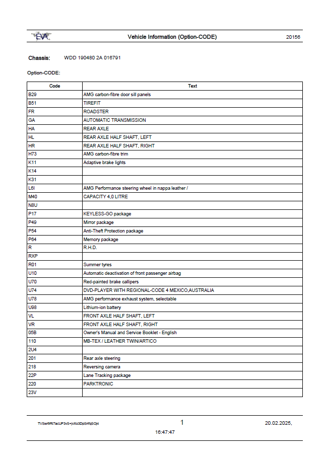 • VIN: WDD1904802A016791