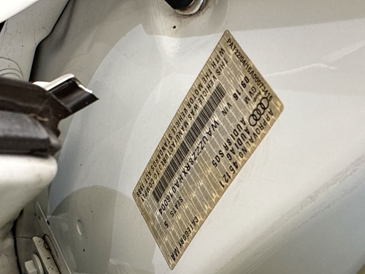 • VIN: WAUZZZ8RXHA016004